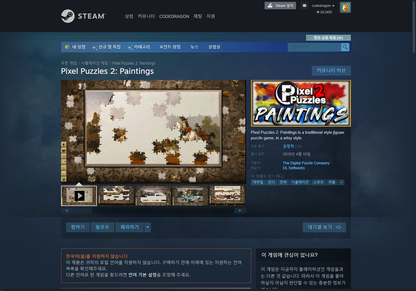 "Pixel Puzzles 2: Paintings" 게임 보유 확인