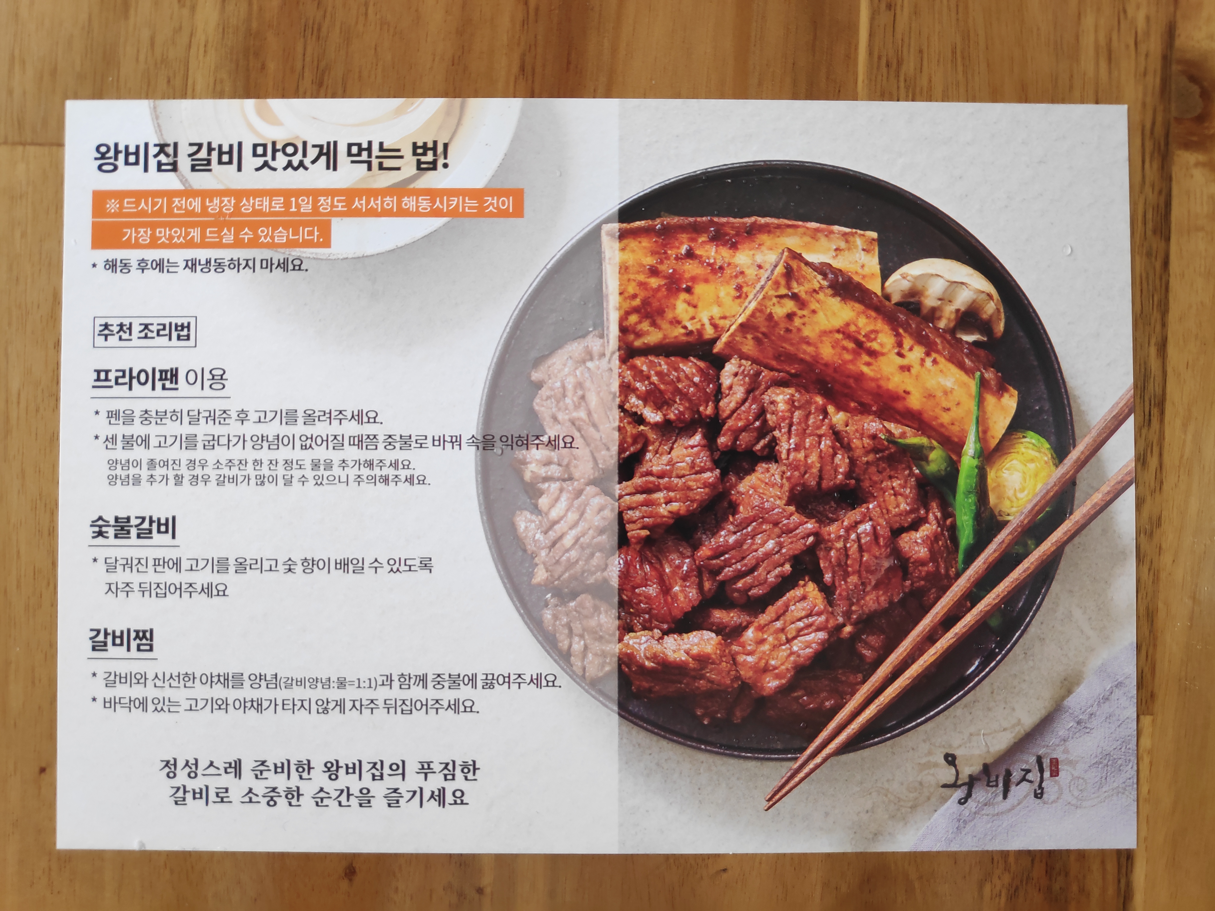 종이 카드에는 조리법이 간단하게 안내되어 있습니다.