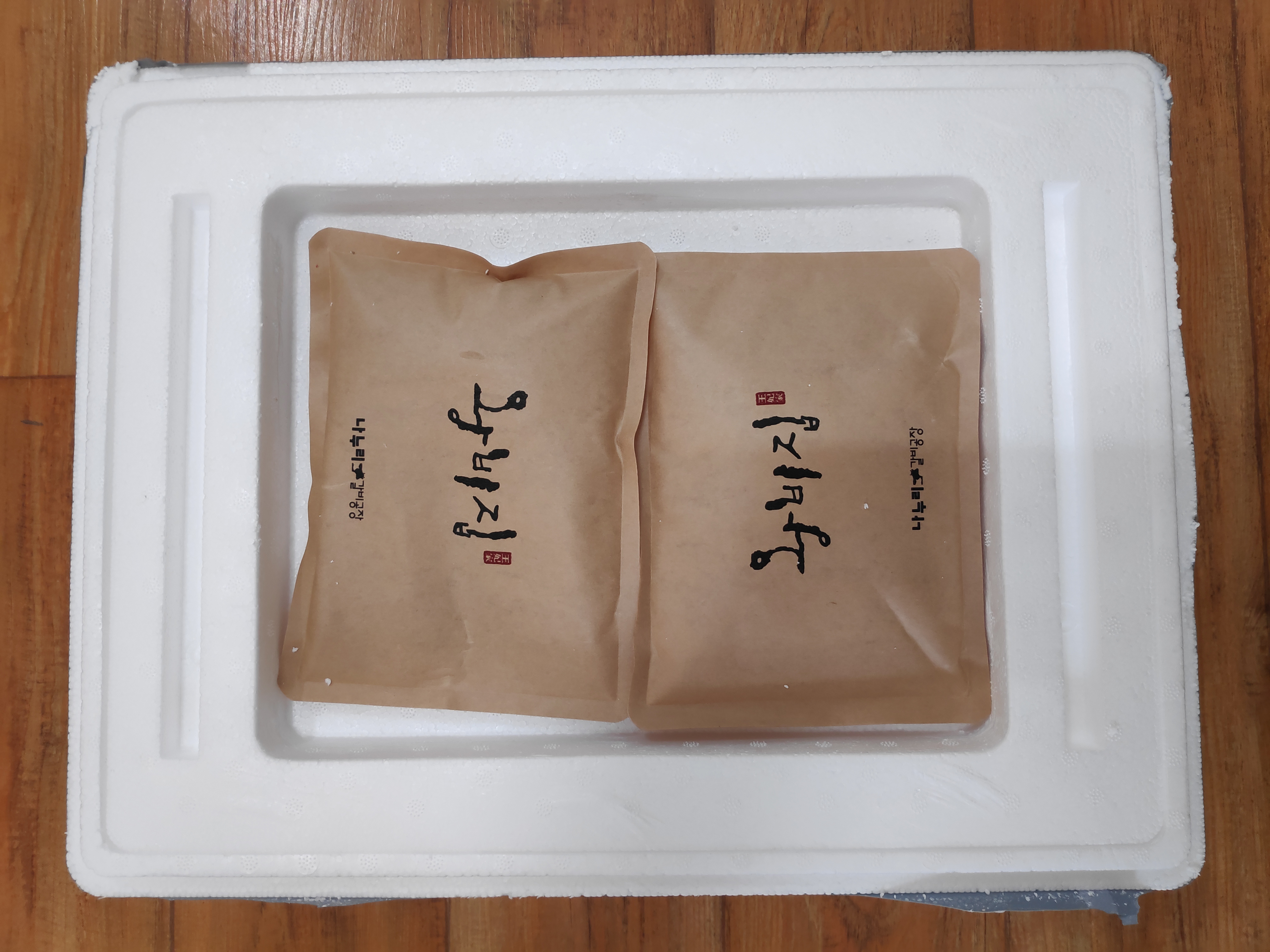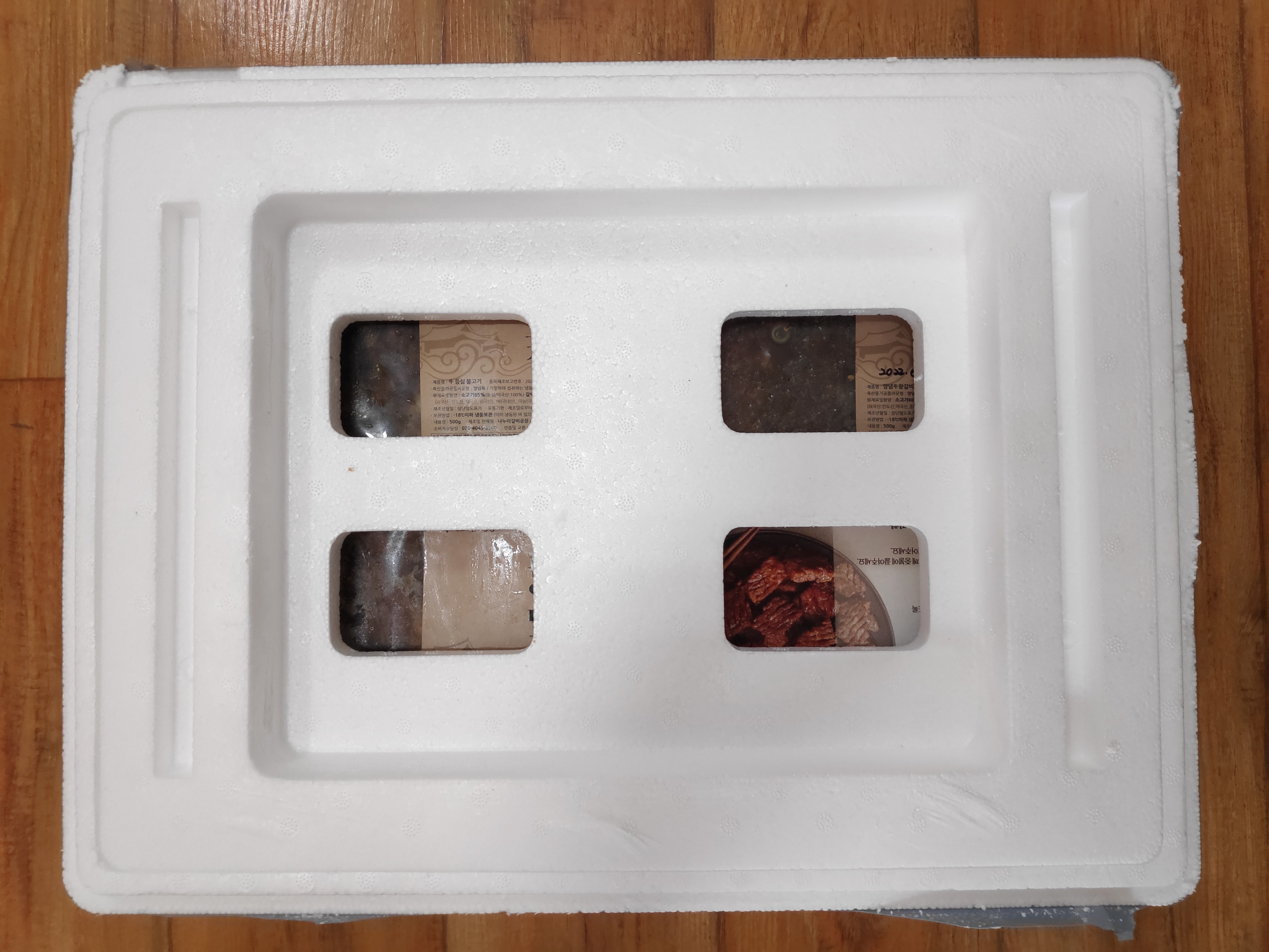 스티로폼은 자체 제작해서 인지 포장된 식품이 움직이지 않게 잘 고정되어 있습니다.