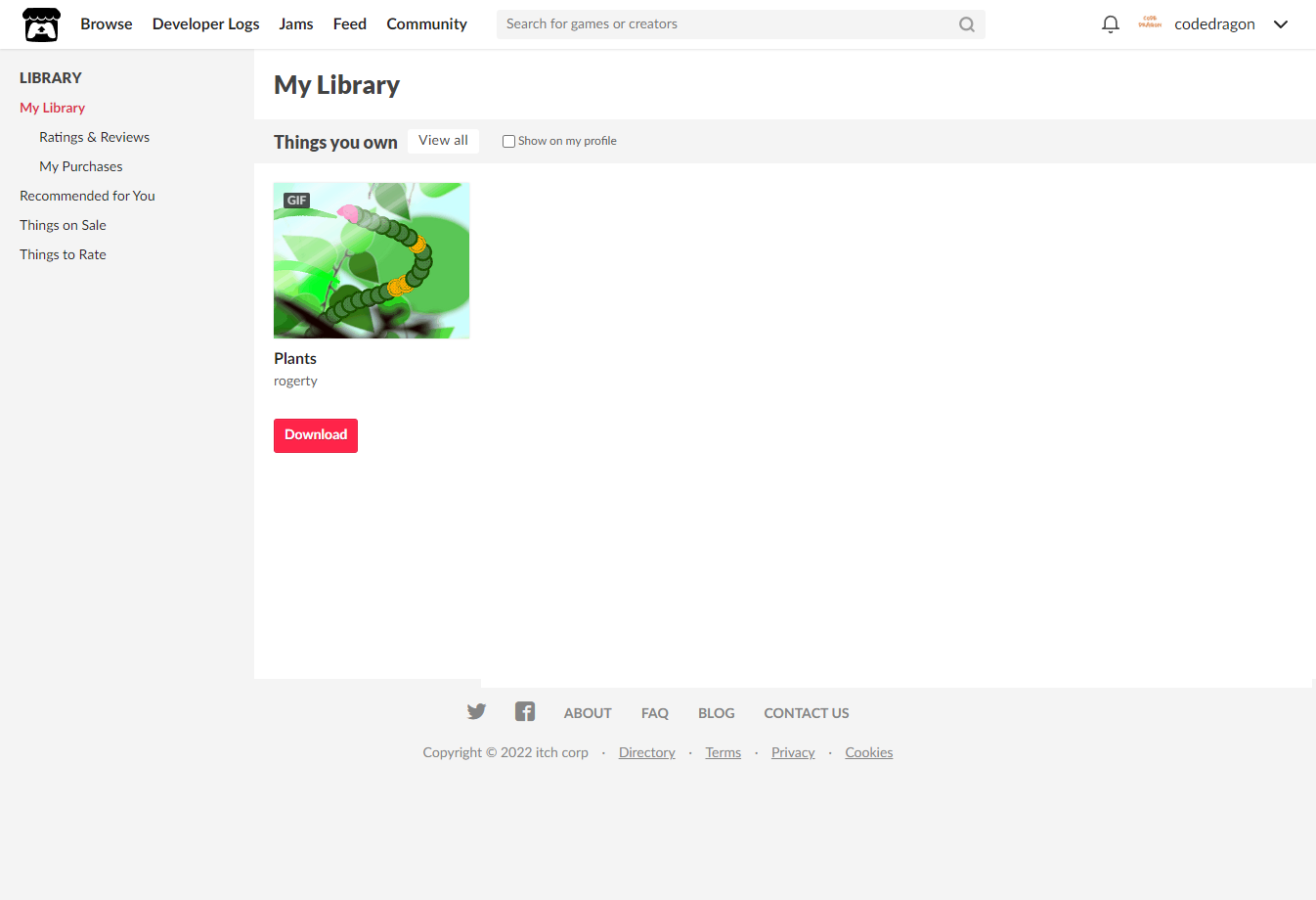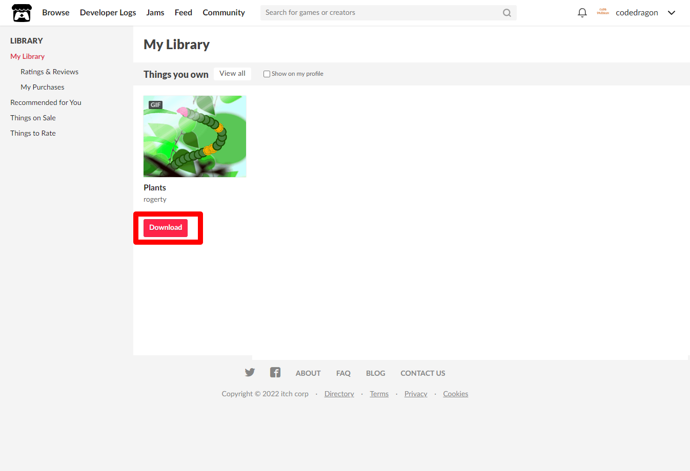 "My Lirary"에서 방금 받은 "Plants" 게임 항목을 확인할 수 있습니다.