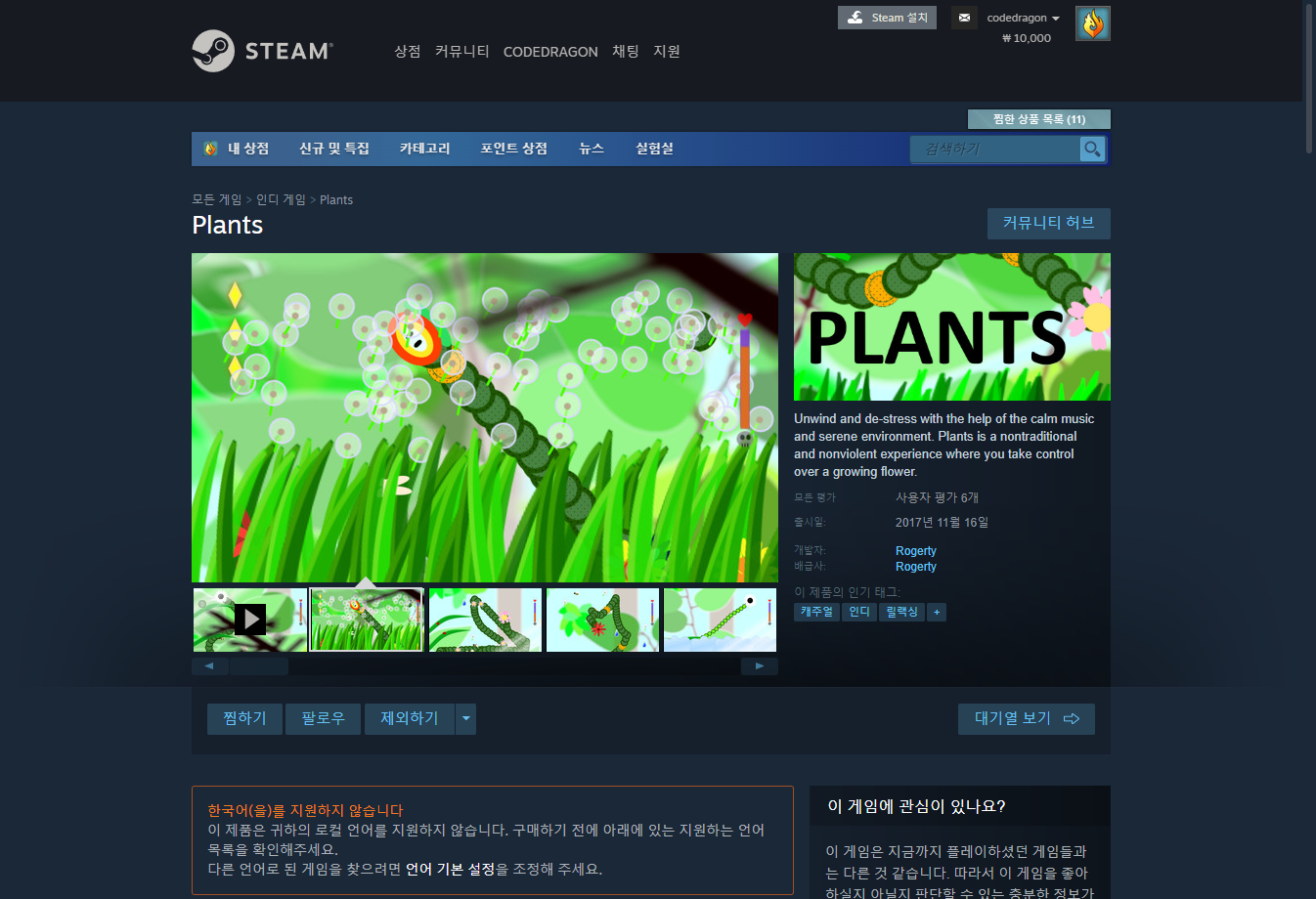 - "Plants" 스팀 Steam 페이지
