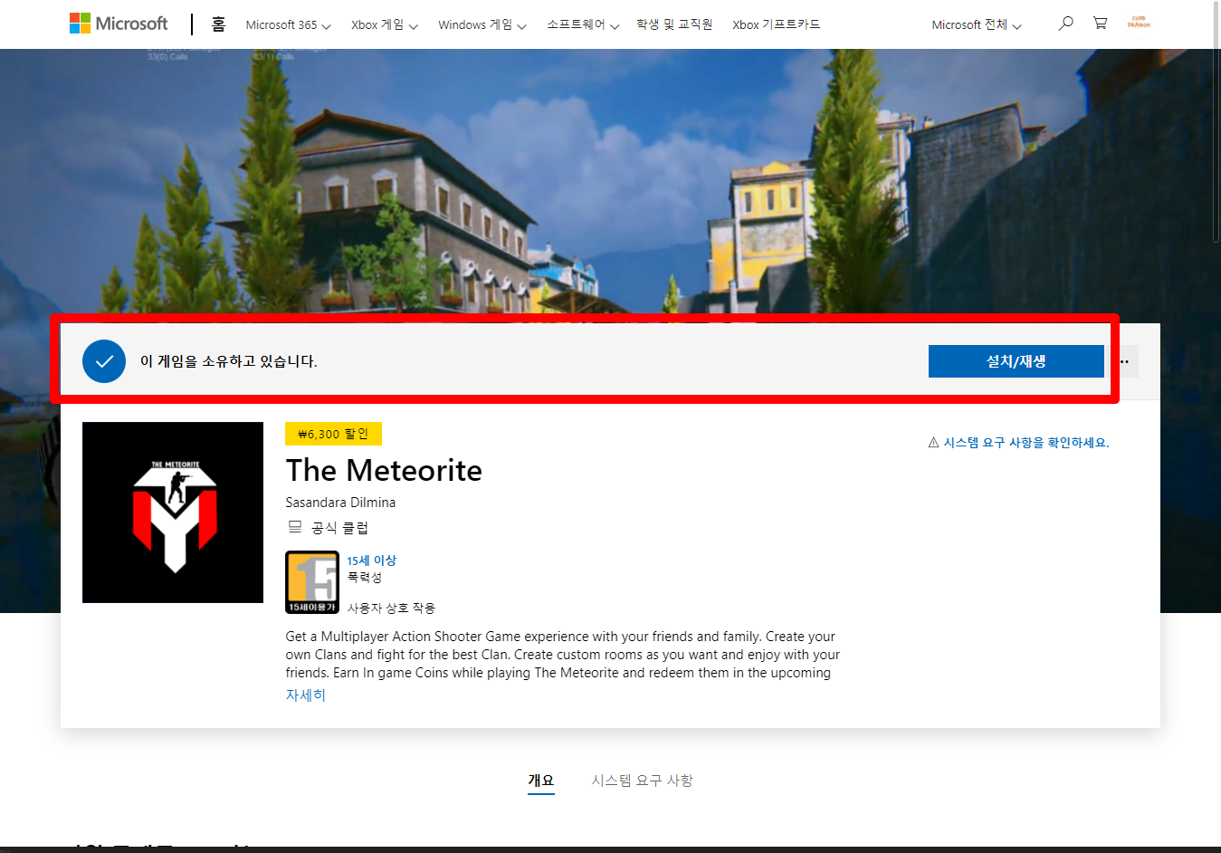 "The Meteorite" 게임페이지에 "이 게임을 소유하고 있습니다"라고 표시되어있어서 가지고 있는 게임항목임을 알 수 있습니다.