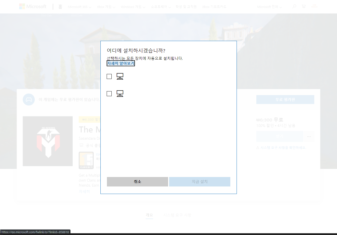 [취소] 버튼을 클릭하면 설치없이 게임 페이지로 이동됩니다.