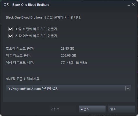 제품설치창이 오픈되면 원하는 위치에 "Black One Blood Brothers"를 설치해 줍니다.