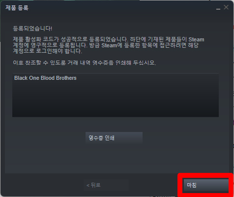 - "Black One Blood Brothers" 스팀키 등록하기; 활성화하기