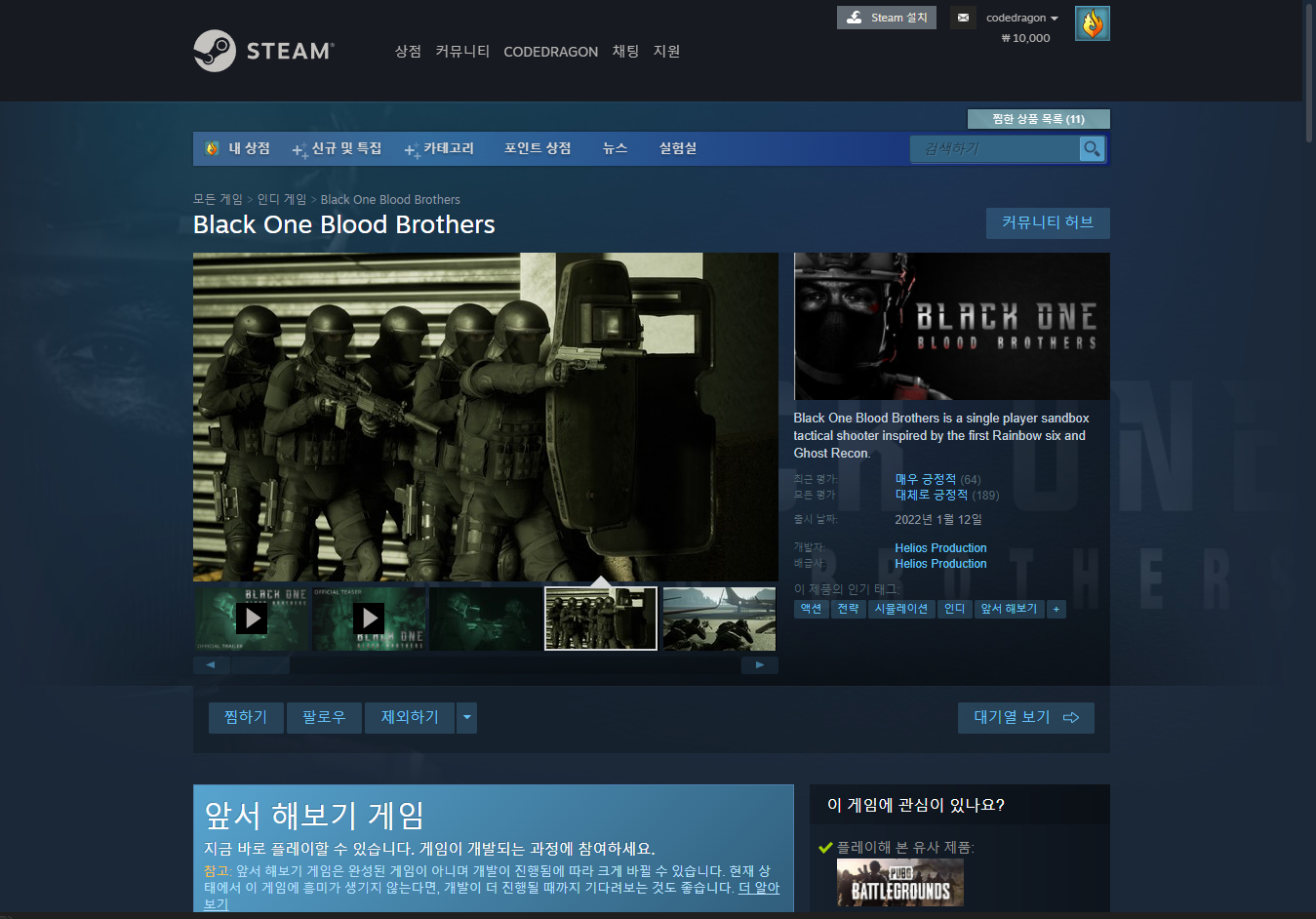 "FPS"게임인 "Black One Blood Brothers" 게임입니다.