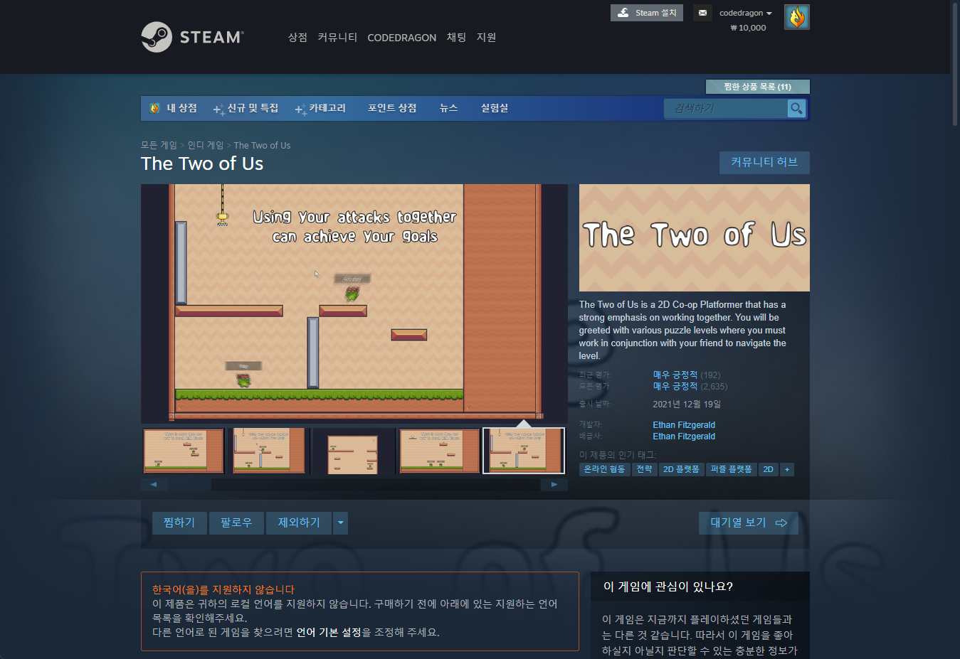 "The Two of Us" 스팀 페이지 입니다.