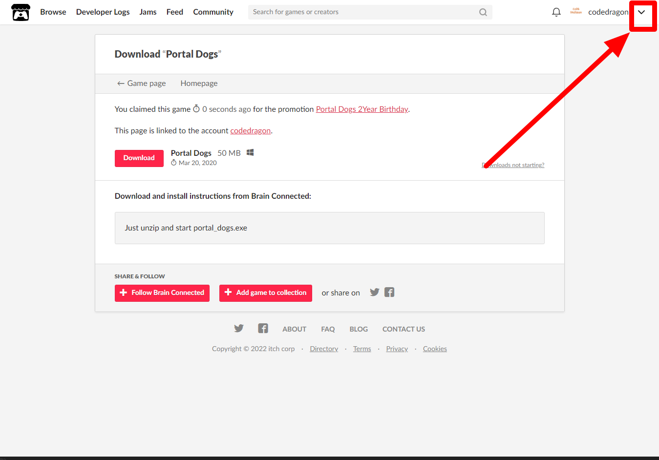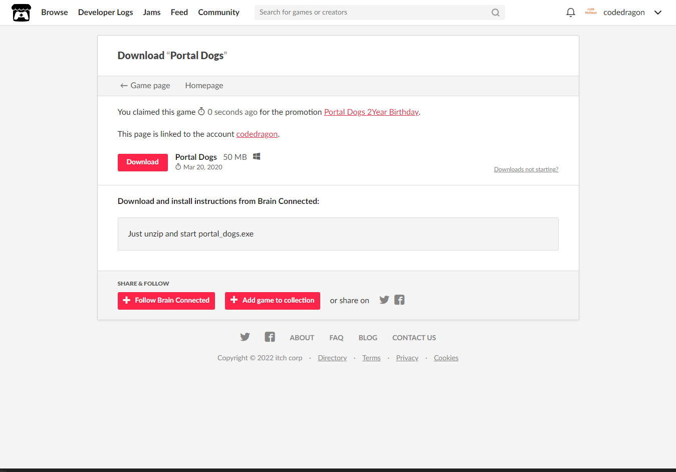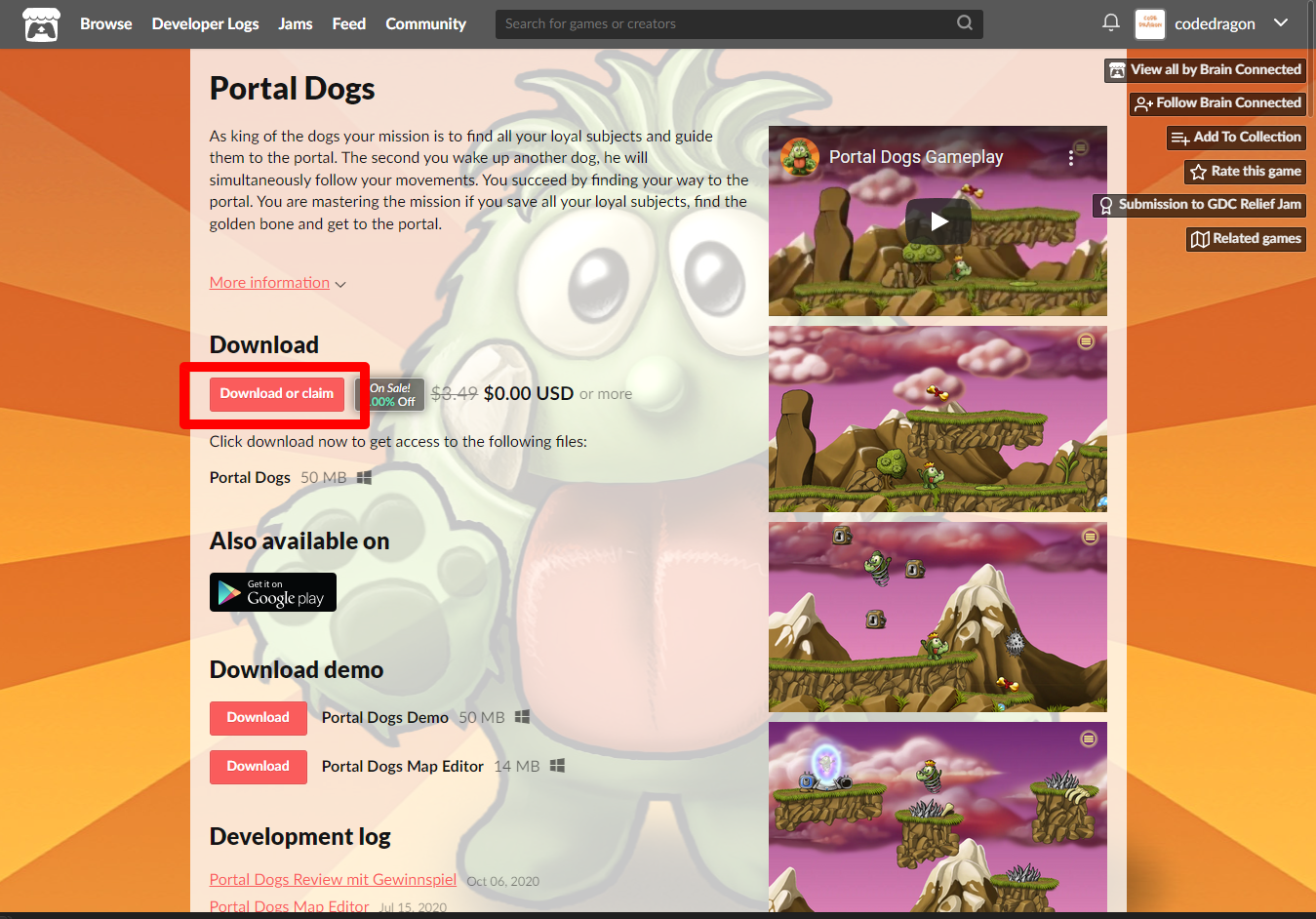 "Portal Dogs" 페이지에 있는 [Download or claim]을 클릭합니다.