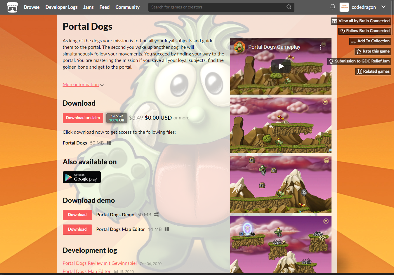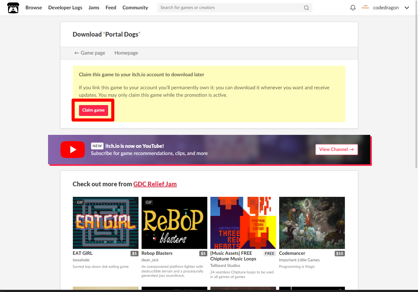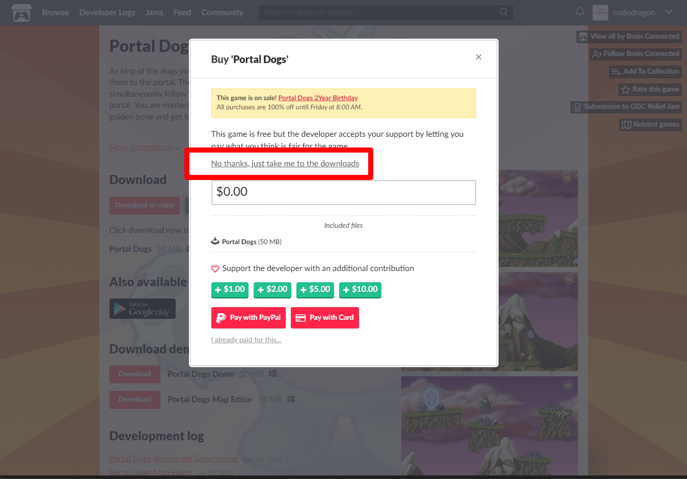 "Portal Dogs" 페이지에 있는 [Download or claim]을 클릭합니다.