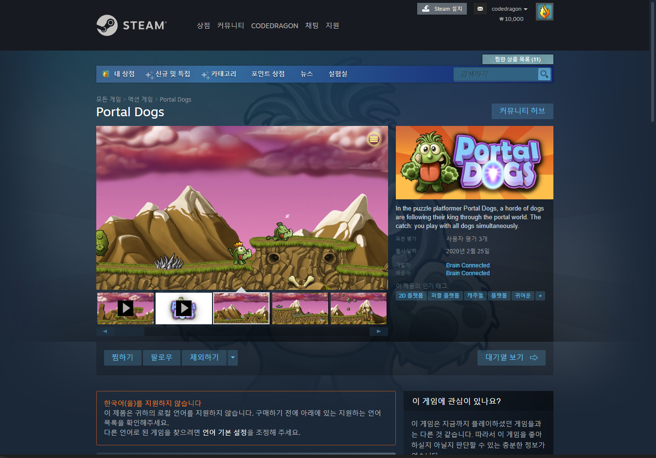 "My Lirary"에서 방금 받은 "Portal Dogs" 게임 항목을 확인할 수 있습니다.