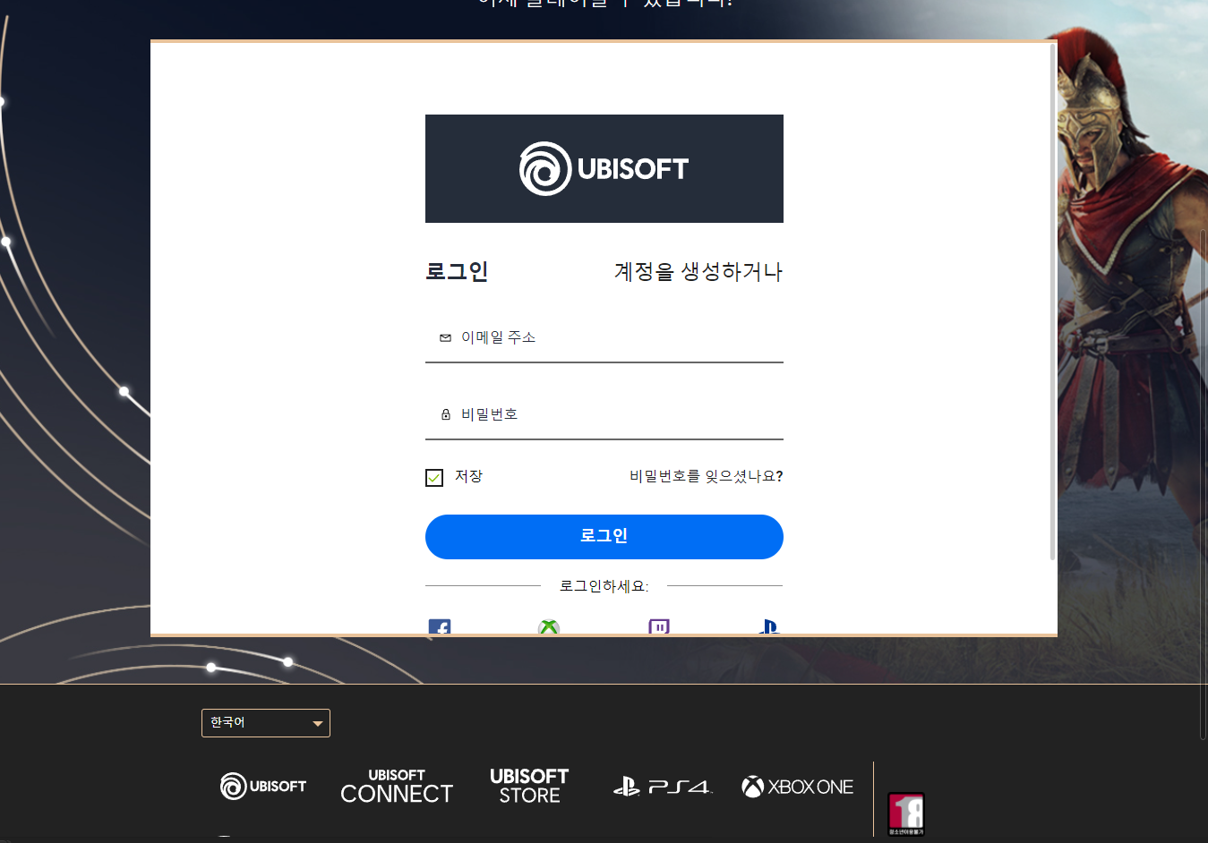 Ubisoft 유비소프트 계정으로 로그인합니다.