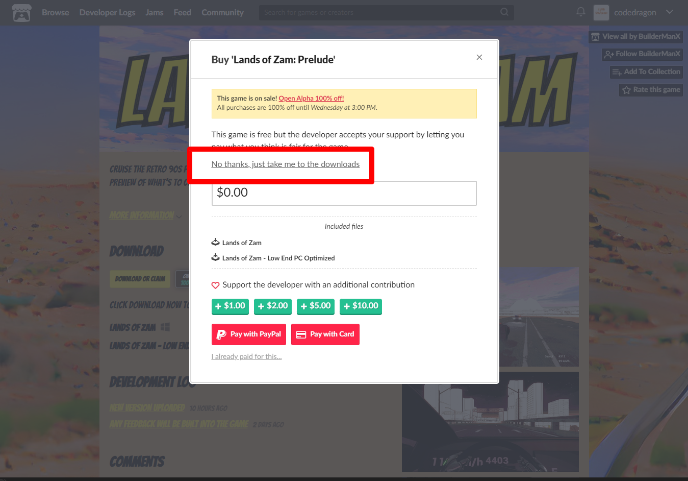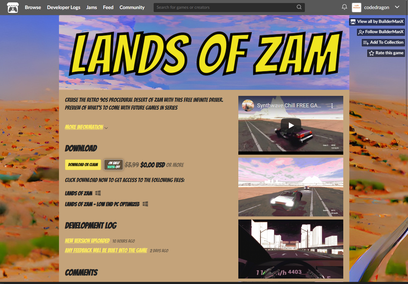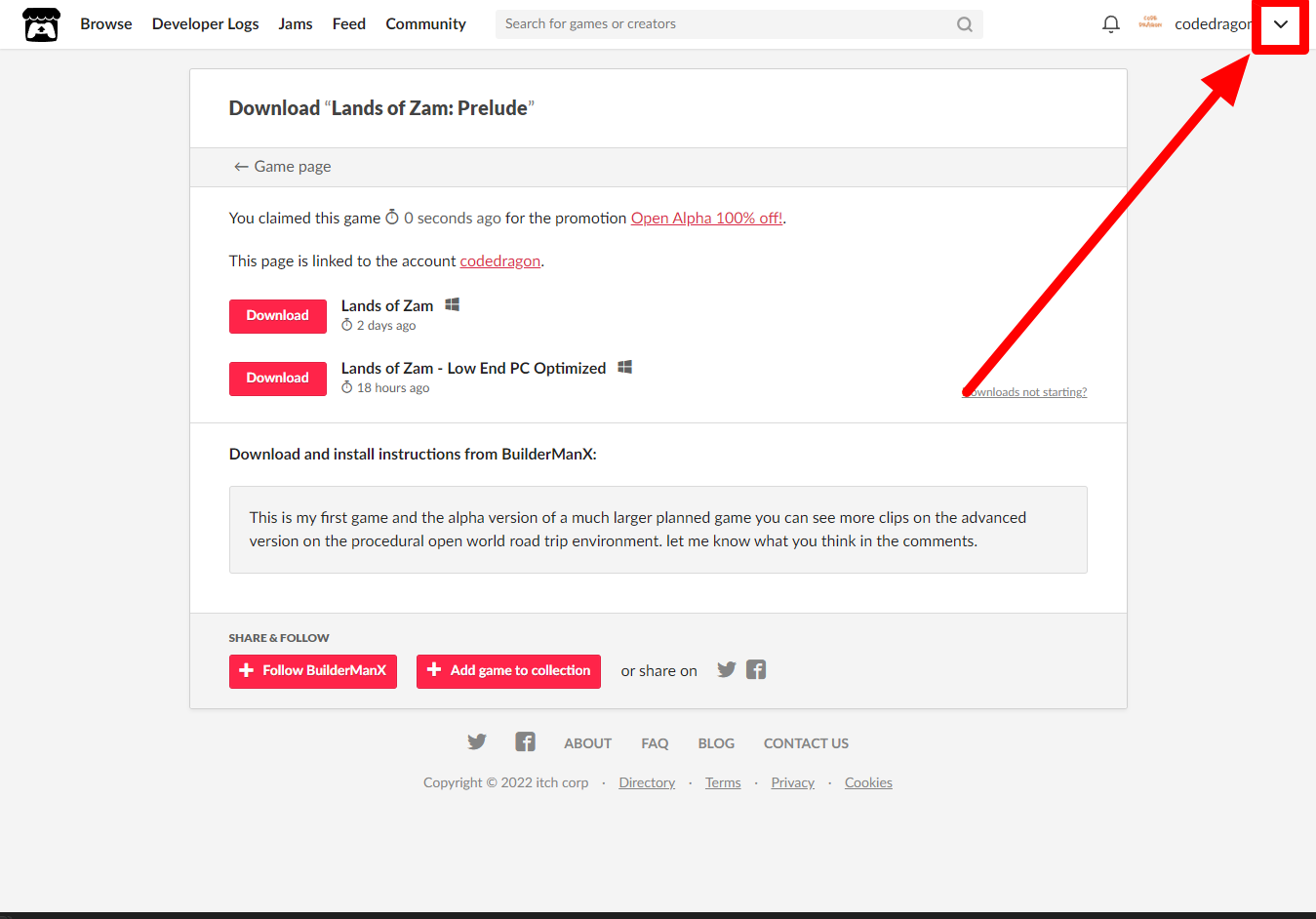 "Lands of Zam: Prelude" 페이지에 있는 [Download or claim]을 클릭합니다.