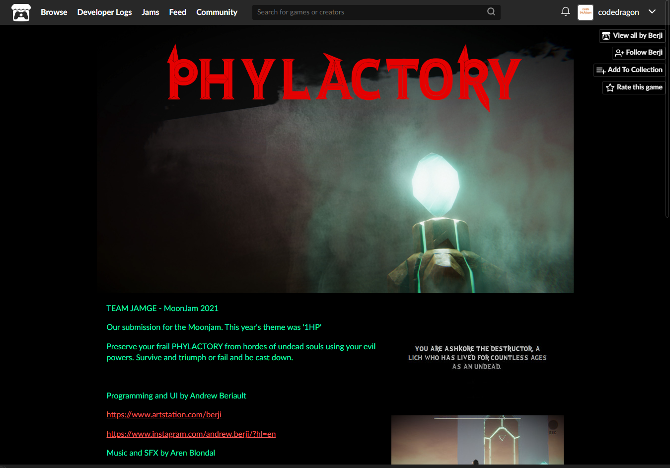 - "PHYLACTORY" 게임 페이지