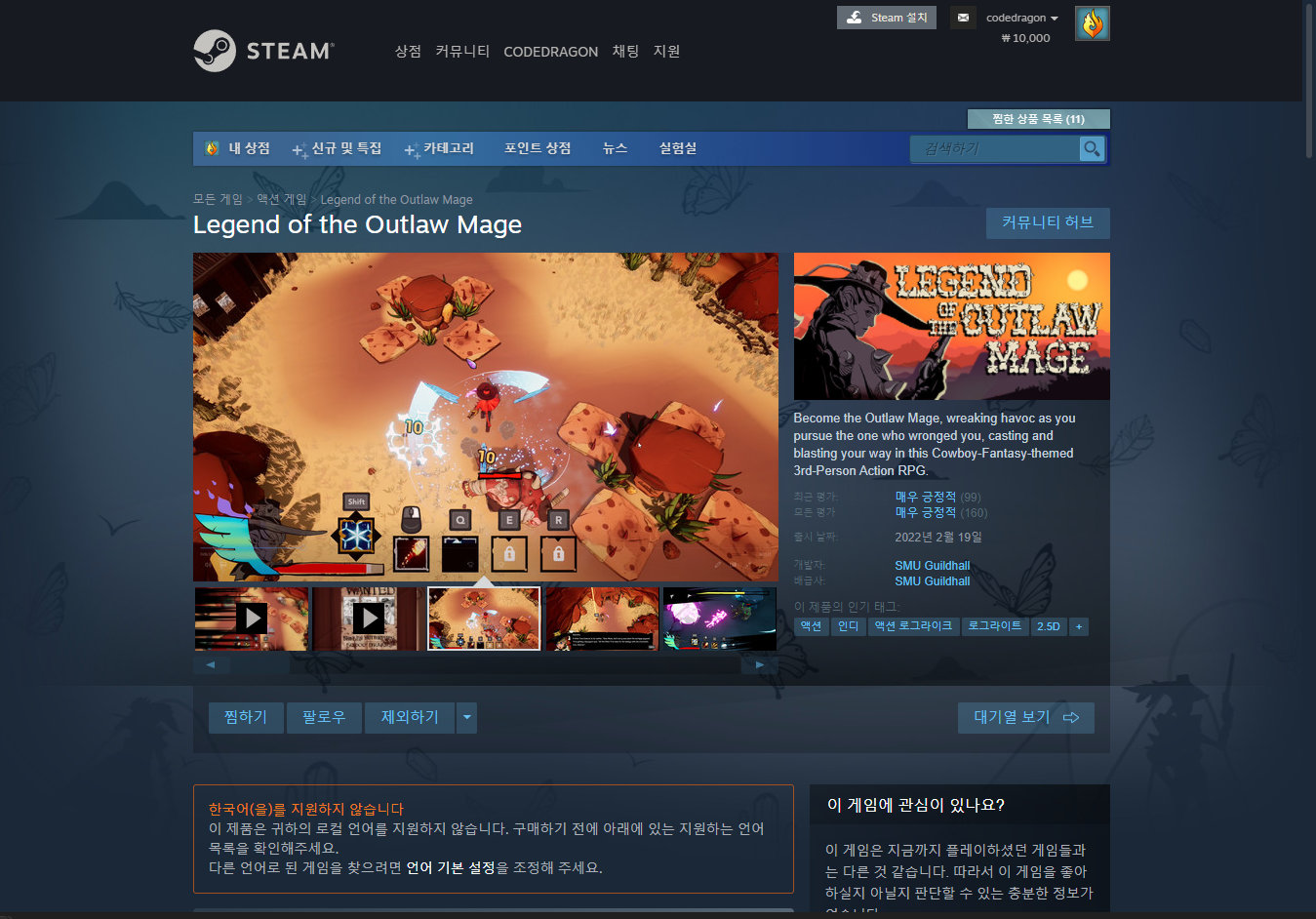 "Legend of the Outlaw Mage" 스팀 페이지 입니다.