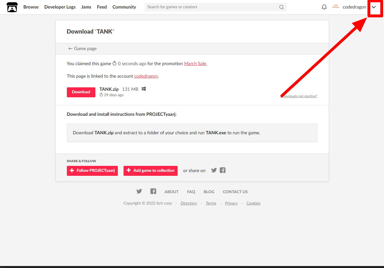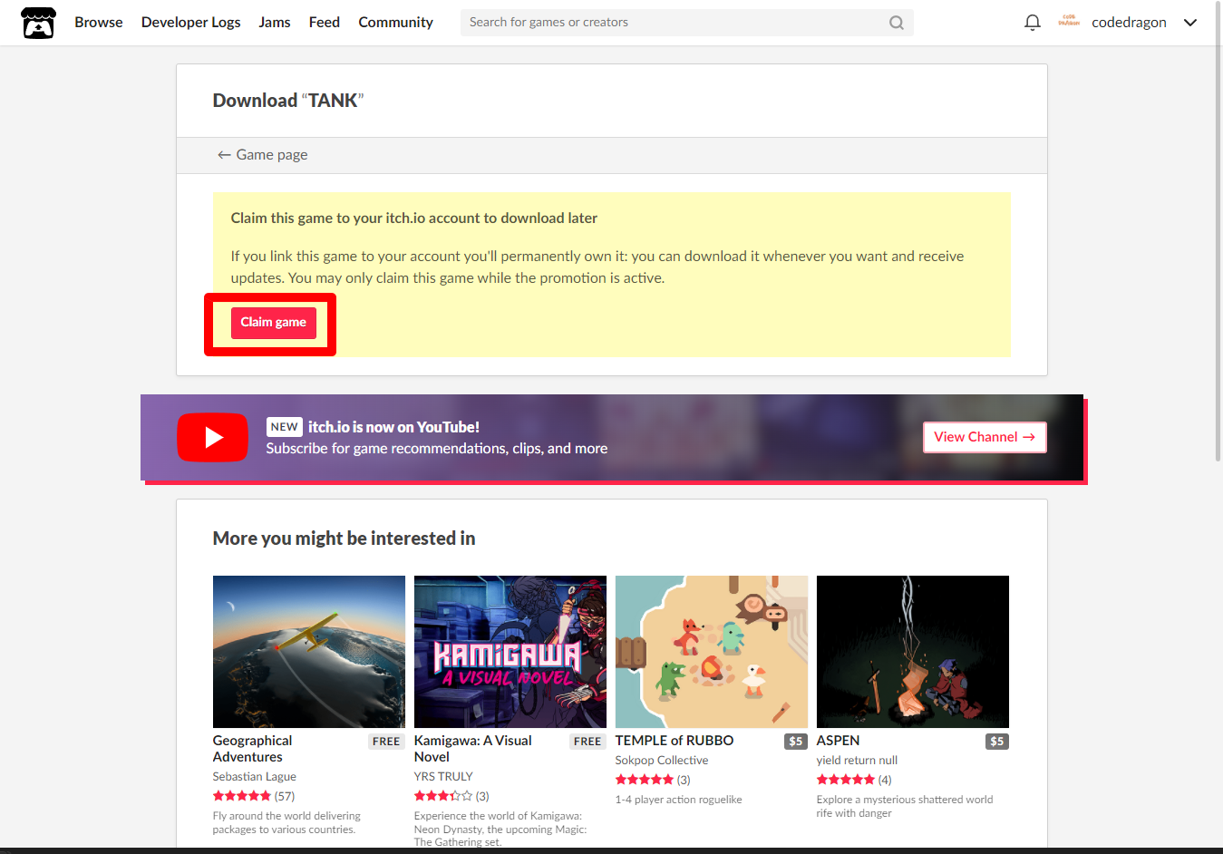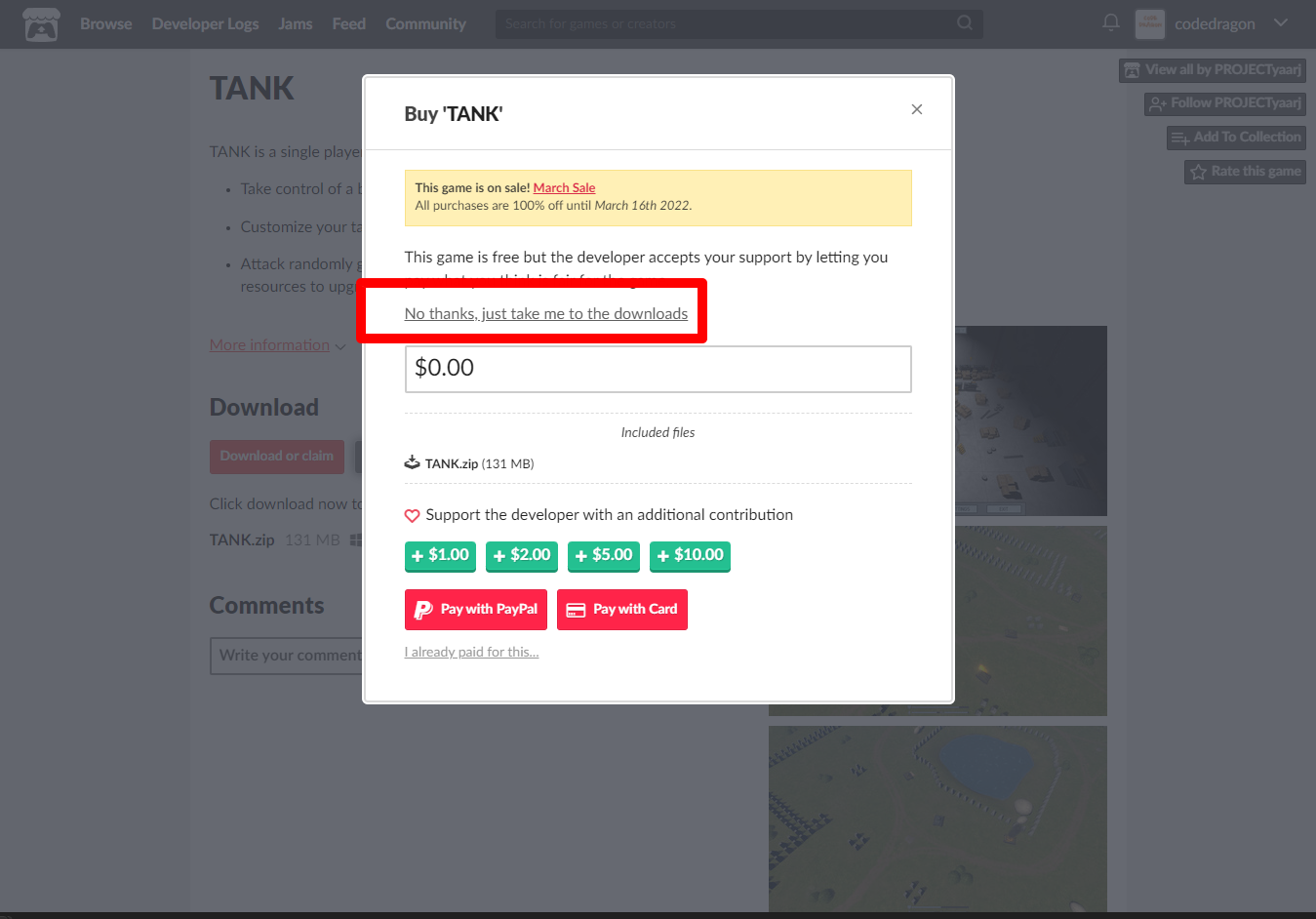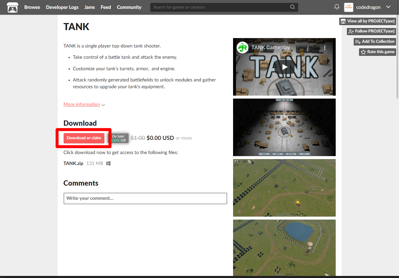 "TANK" 페이지에 있는 [Download or claim]을 클릭합니다.