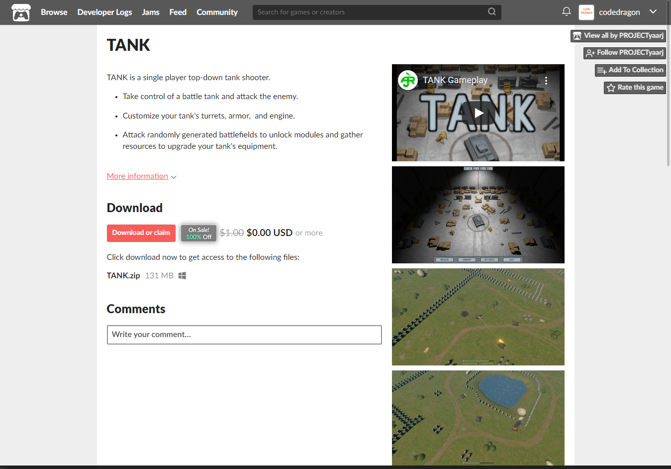 ₩1,205 -> ₩0(Free) TANK 탱크 무료로 받기 영구소장 - itch.io 잇치 닷 아이오 한시적 무료 소장하기
