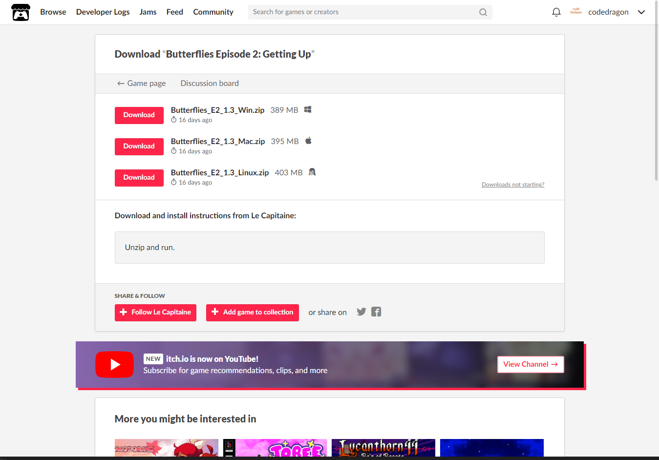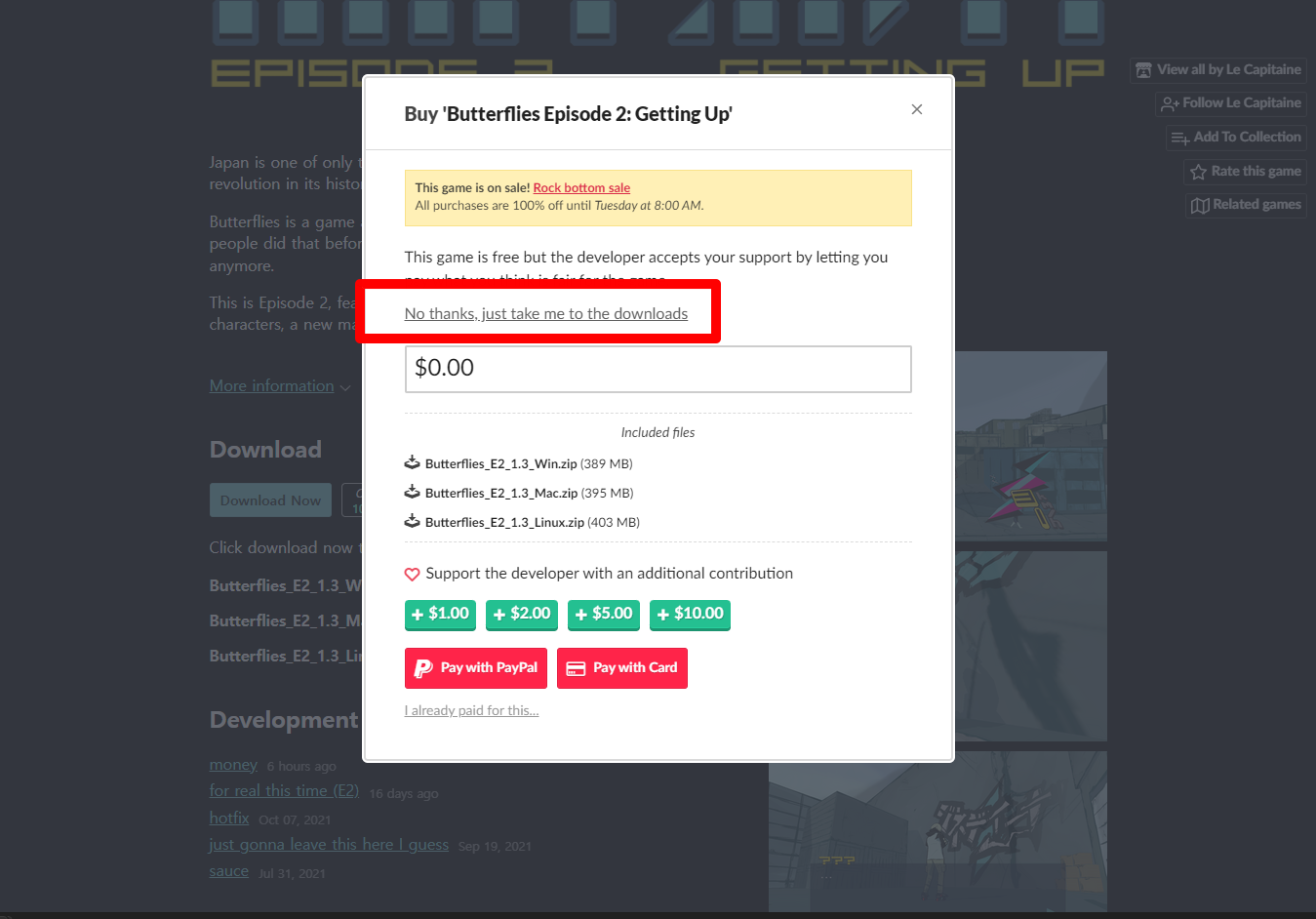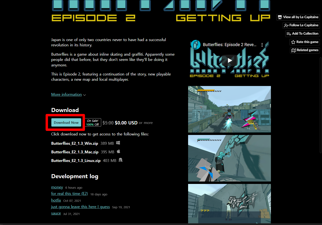 "Butterflies Episode 2: Getting Up" 페이지를 내려서 [Download Now]을 클릭합니다.
