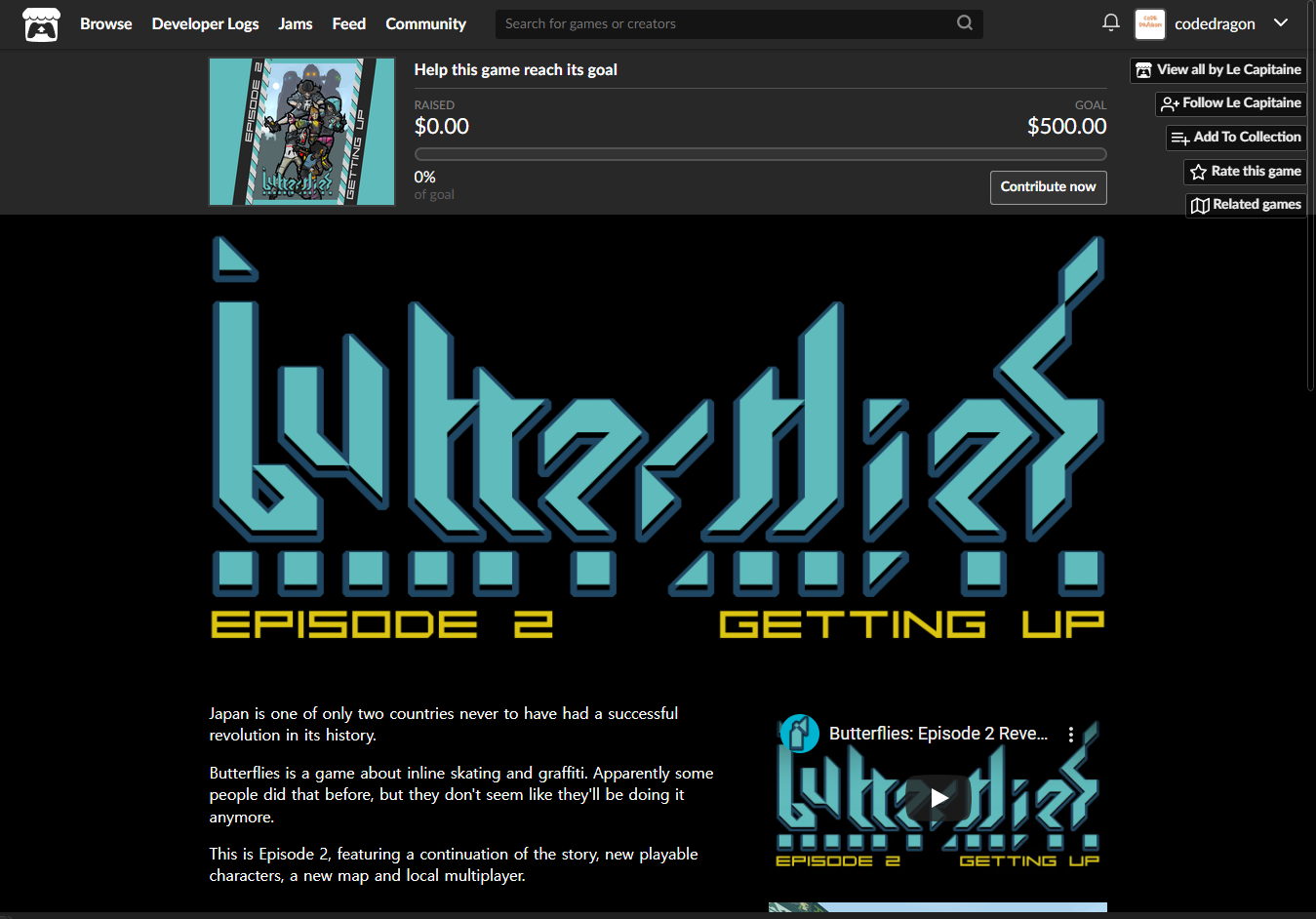 - "Butterflies Episode 2: Getting Up" 게임 페이지