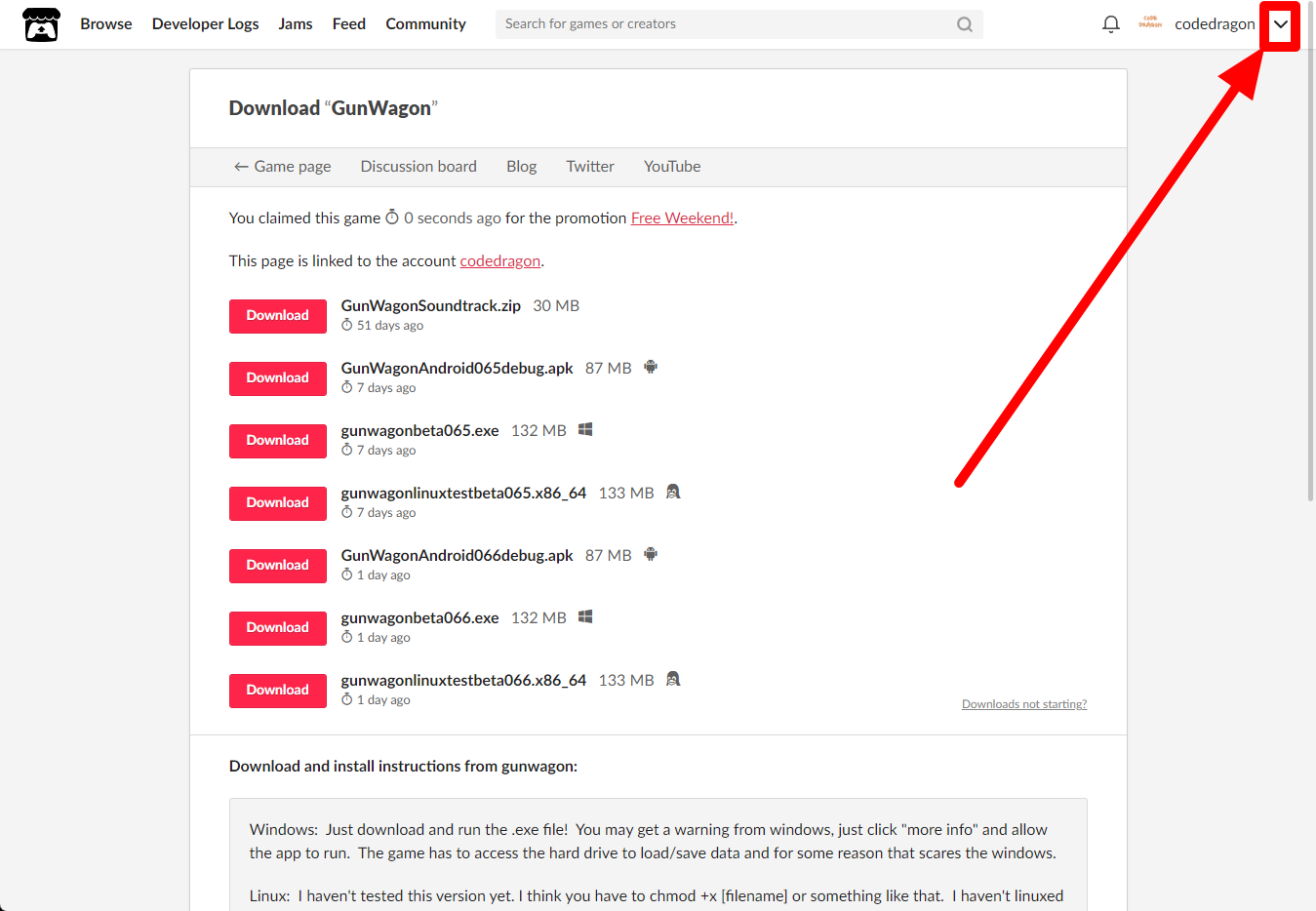 "GunWagon" 페이지에 있는 [Download or claim]을 클릭합니다.