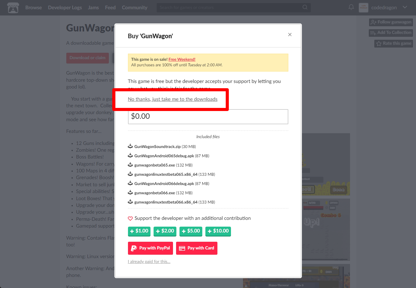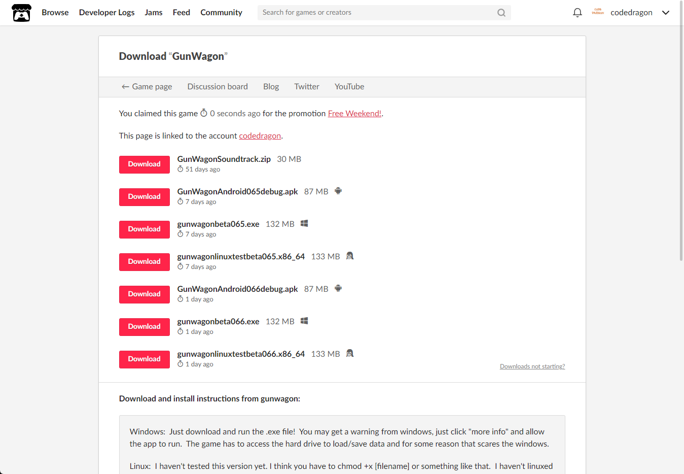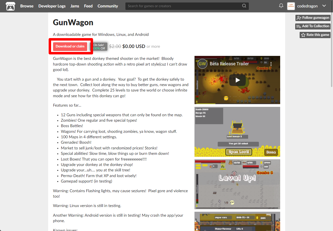 "GunWagon" 페이지에 있는 [Download or claim]을 클릭합니다.