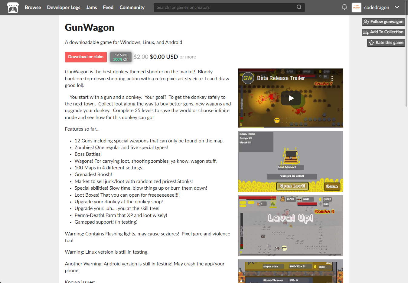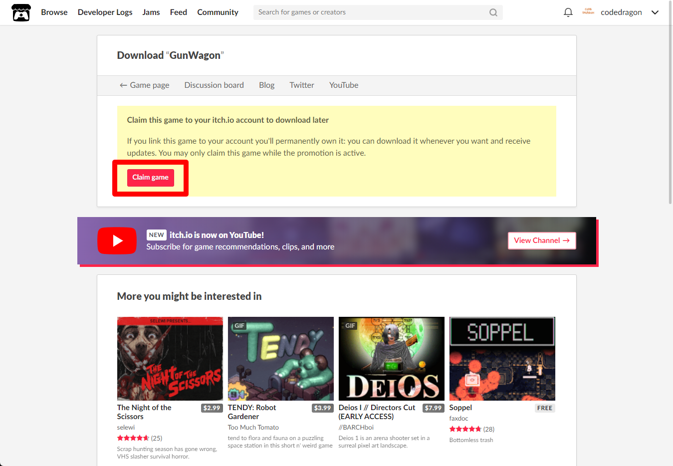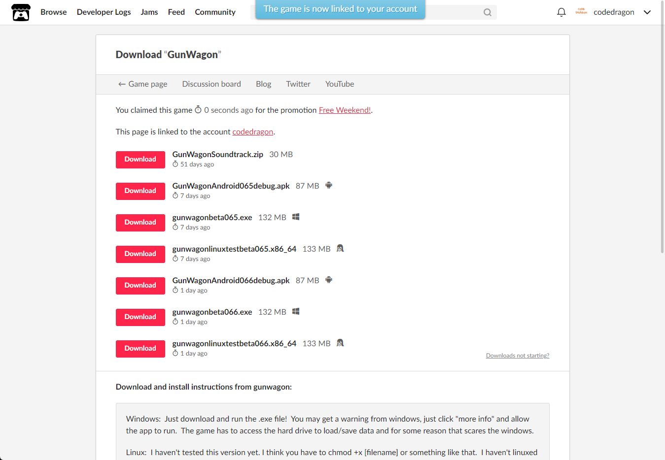 "GunWagon" 페이지에 있는 [Download or claim]을 클릭합니다.