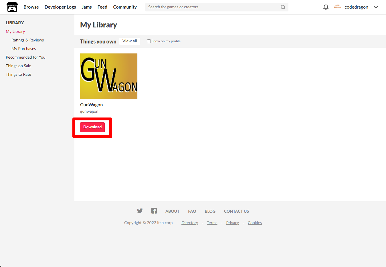 "My Lirary"에서 방금 받은 "GunWagon" 게임 항목을 확인할 수 있습니다.