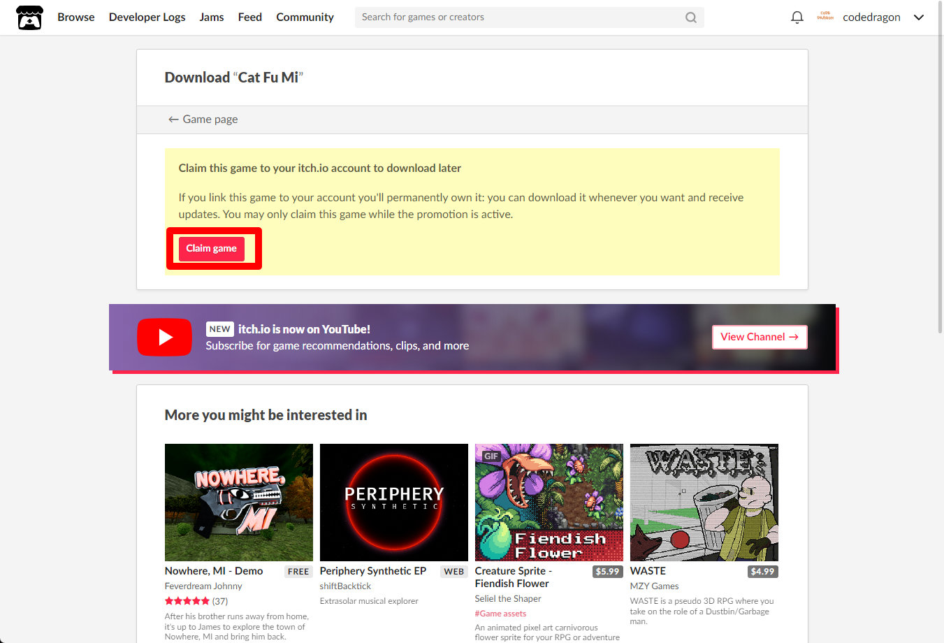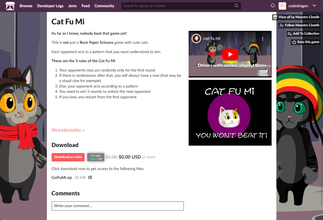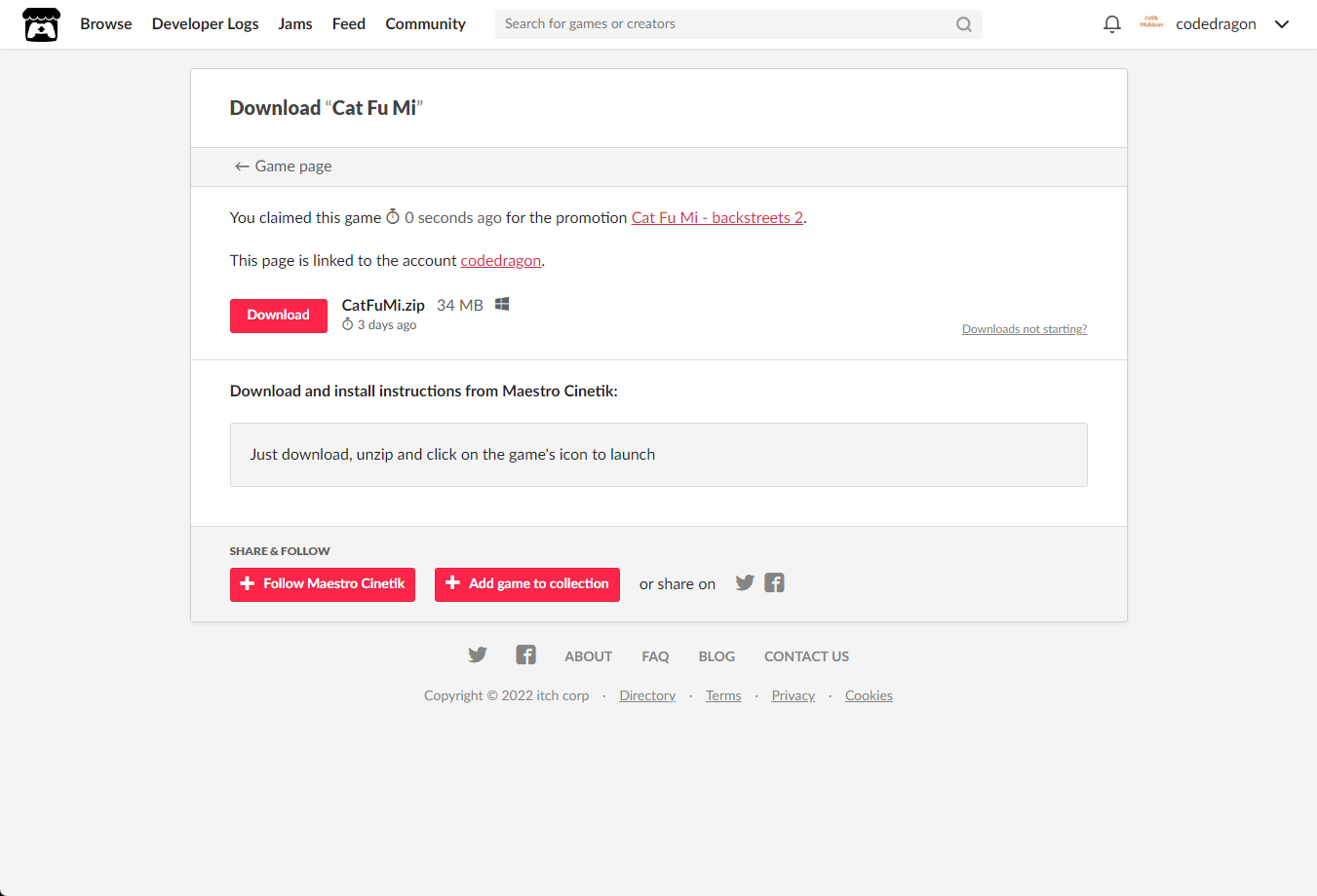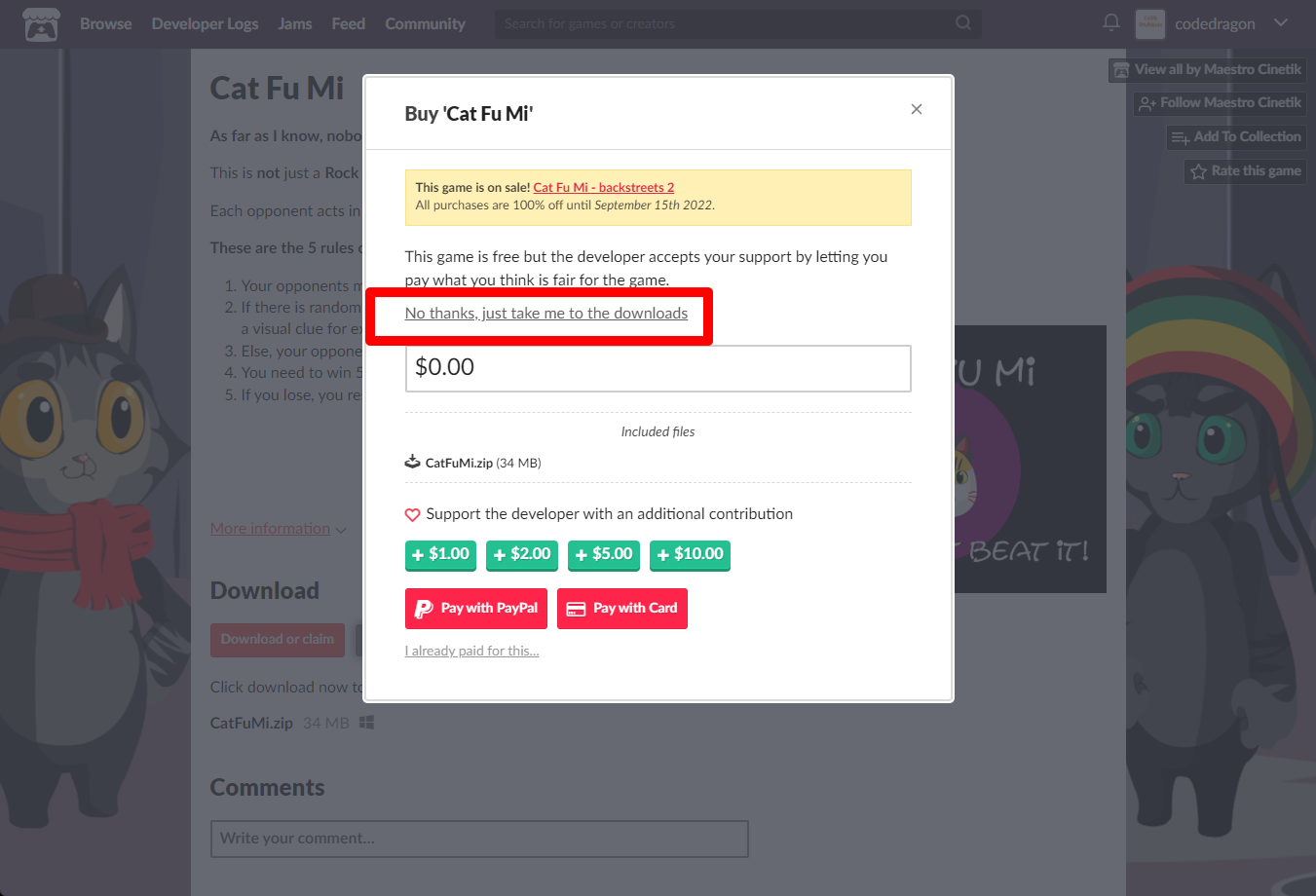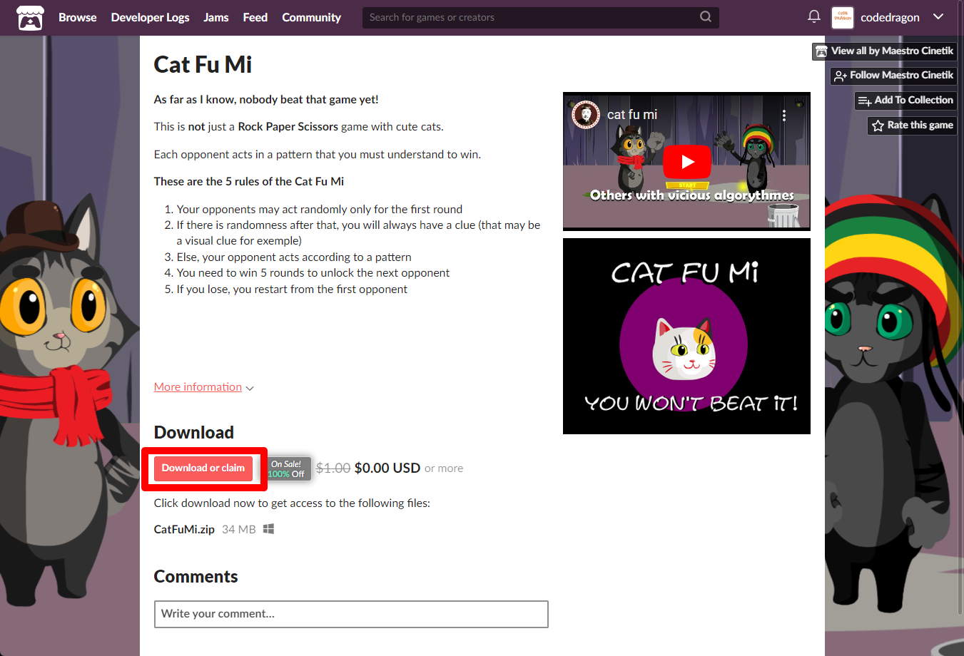 "Cat Fu Mi" 페이지에 있는 [Download or claim]을 클릭합니다.