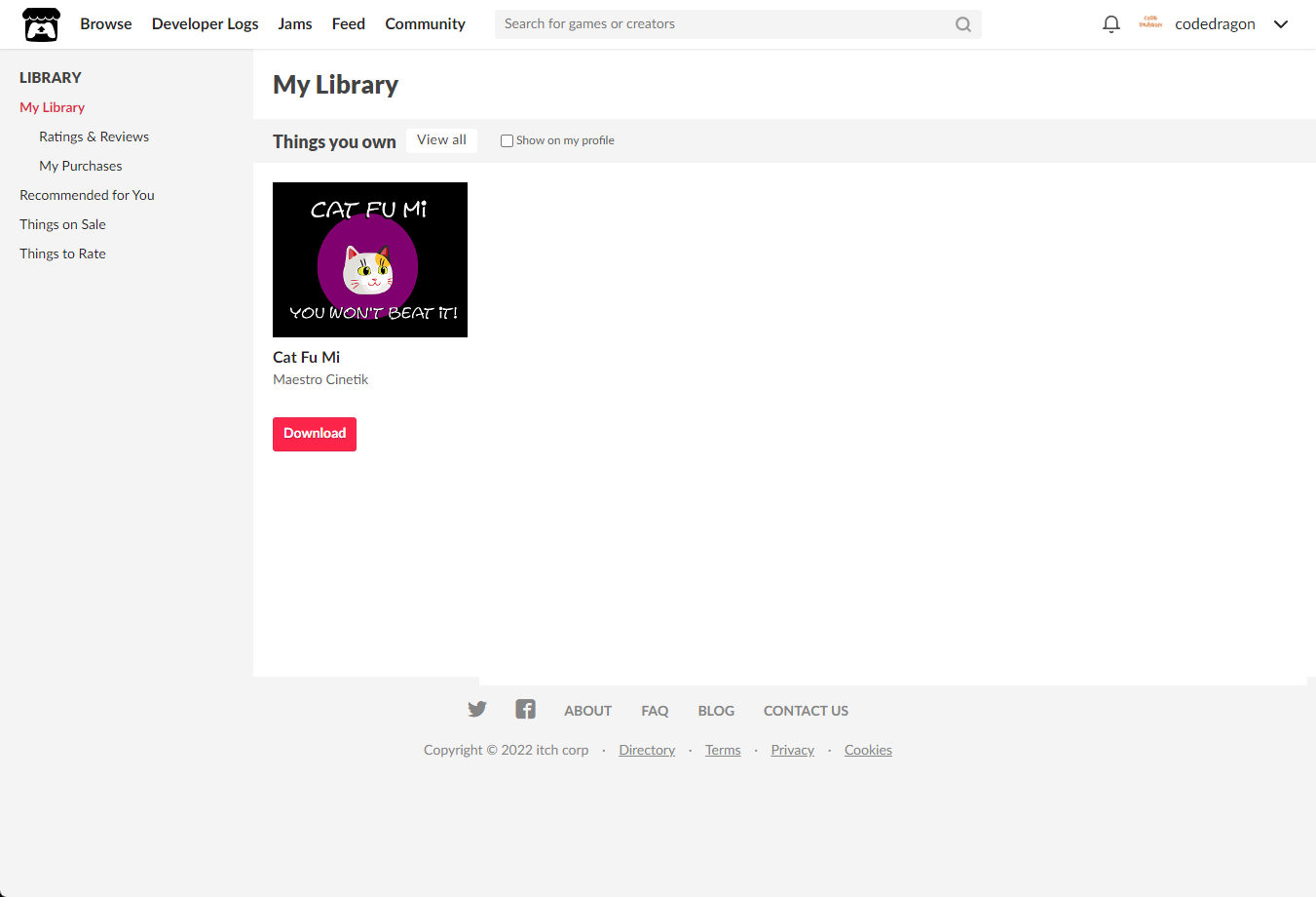 [Claim game]을 클릭하면 "Cat Fu Mi" 게임이 나의 게임 라이브러리에 추가되고 설치파일을 다운받을 수 있는 페이지로 이동됩니다.
