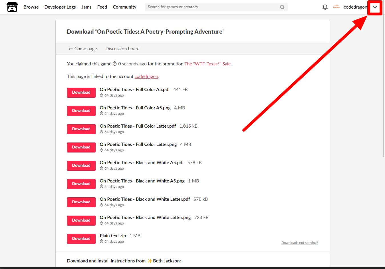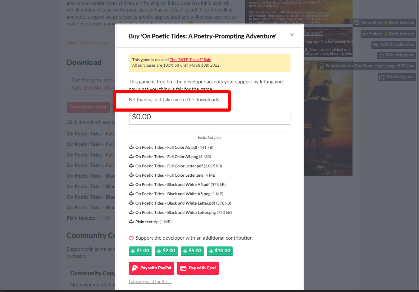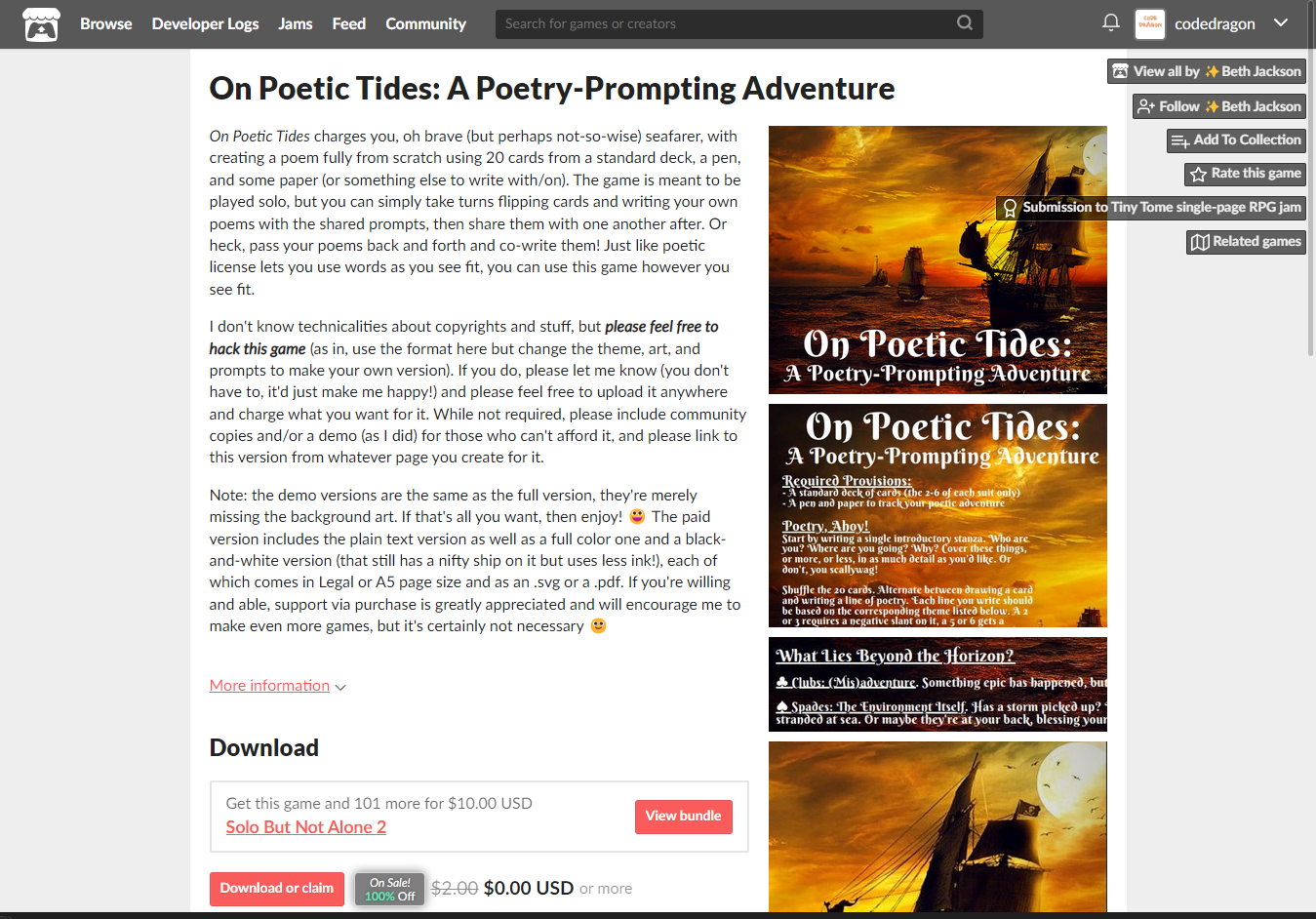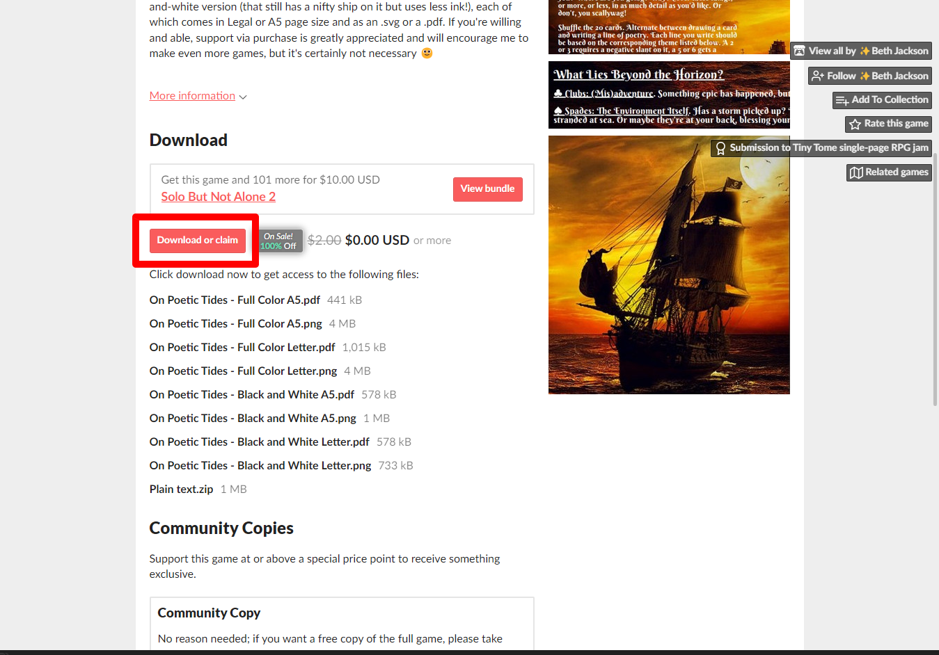 "On Poetic Tides: A Poetry-Prompting Adventure" 페이지에 있는 [Download or claim]을 클릭합니다.