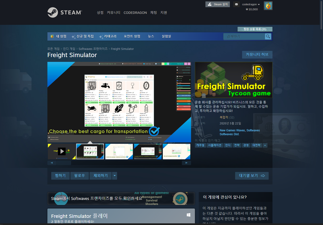 - "Freight Simulator" 게임 페이지