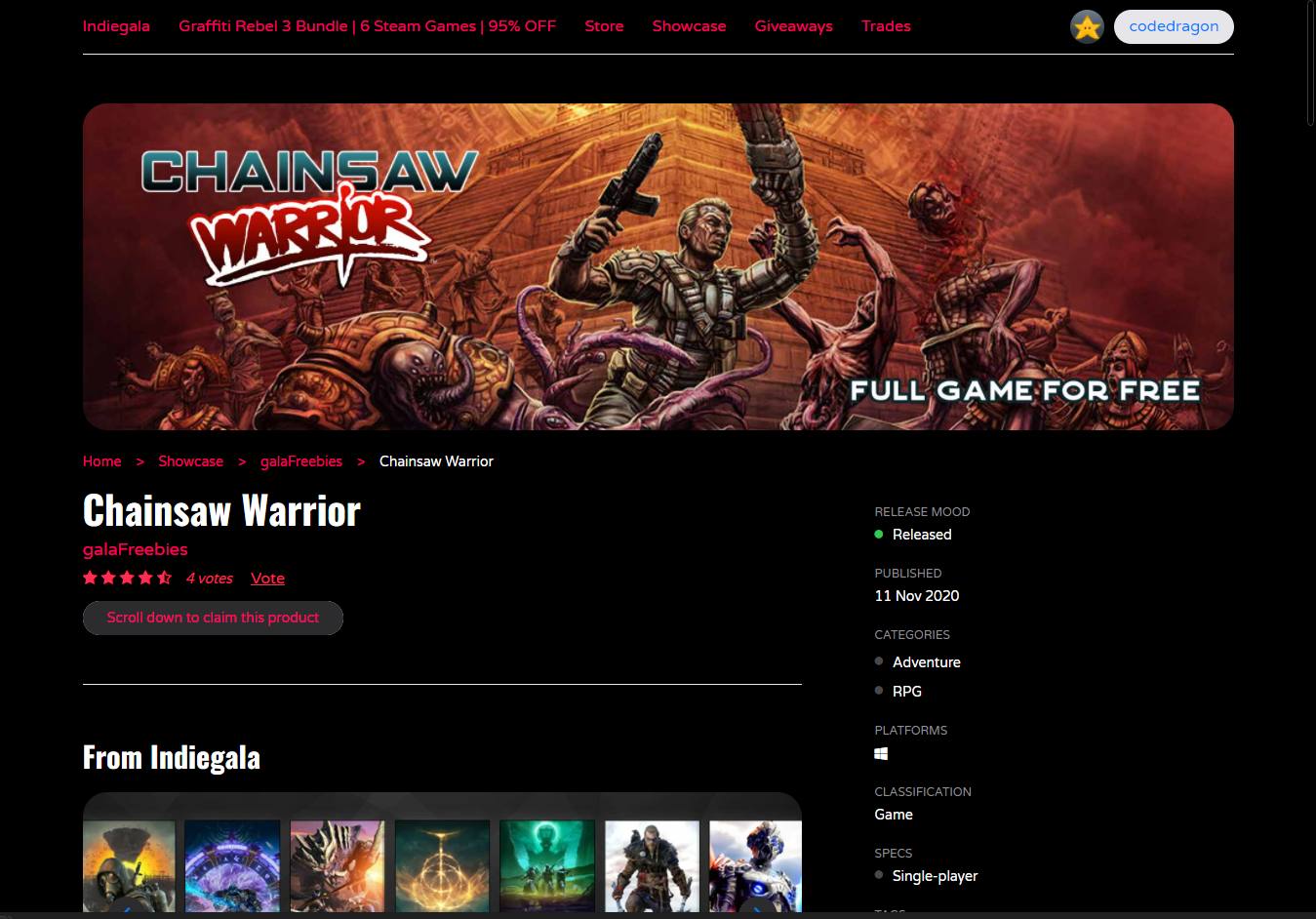 ₩ 0(Free) Chainsaw Warrior 체인소우 워리어 무료 - 인디갈라 indiegala 무료 소장 기회 기간한정 indiegala FREE GAME, Limited time