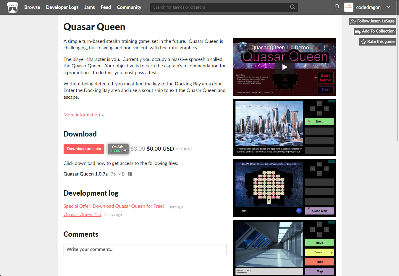 - "Quasar Queen" 게임 페이지