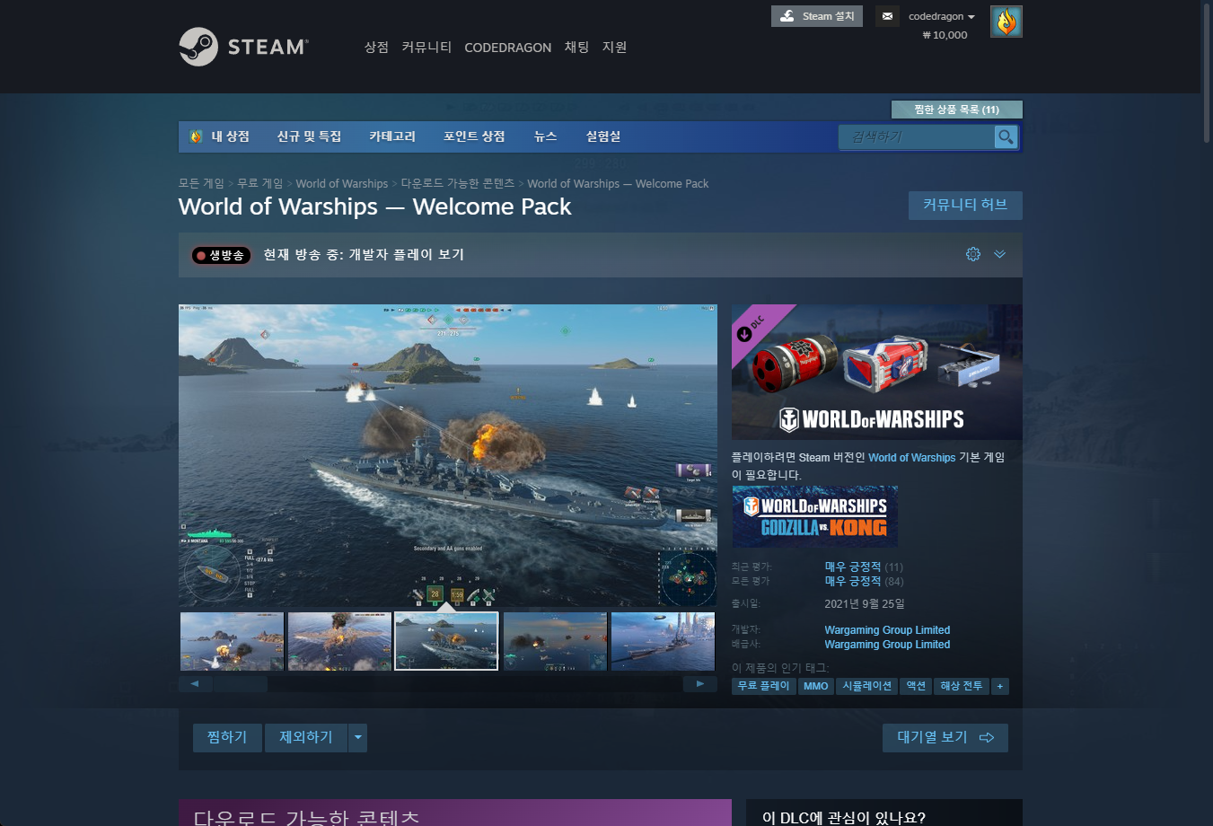 - "World of Warships — Welcome Pack" DLC 게임 페이지 (DLC)