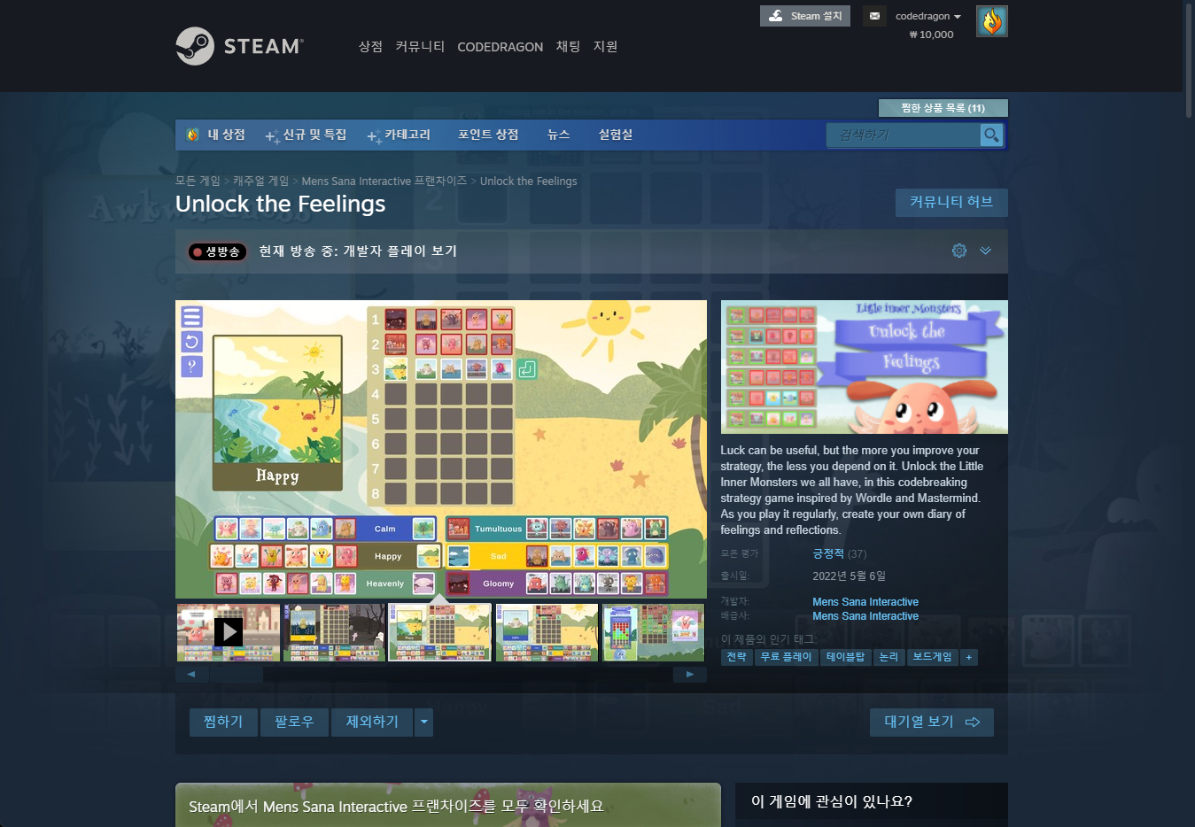 "Unlock the Feelings" 스팀 페이지 입니다.