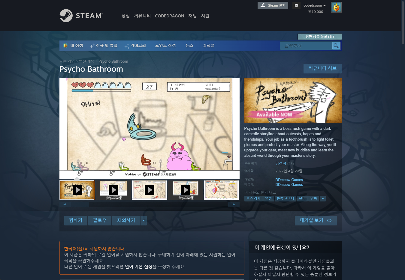 "Psycho Bathroom" 스팀 페이지 입니다.