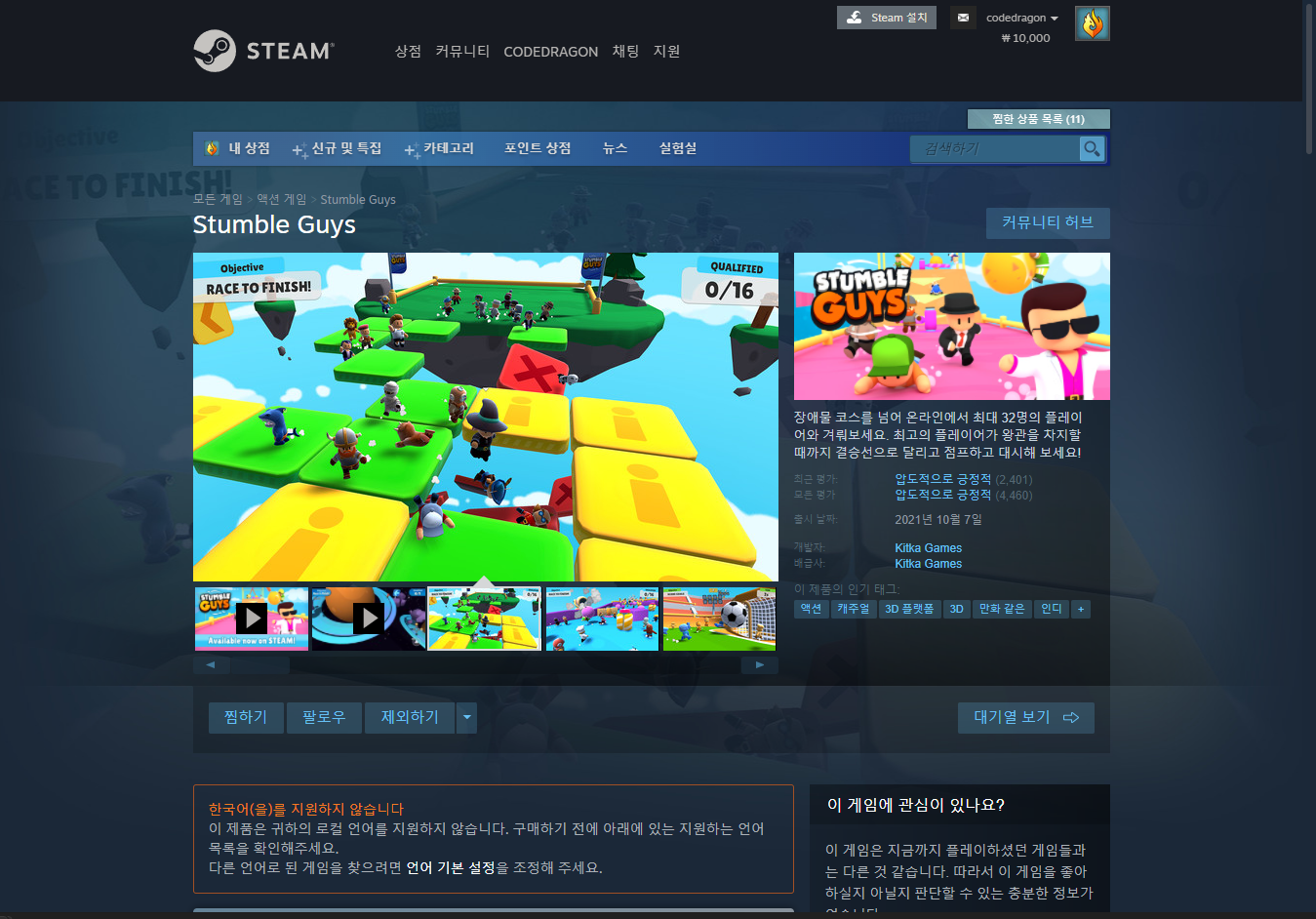 금주 게임은 "캐쥬얼" 게임인 "Stumble Guys" 입니다.