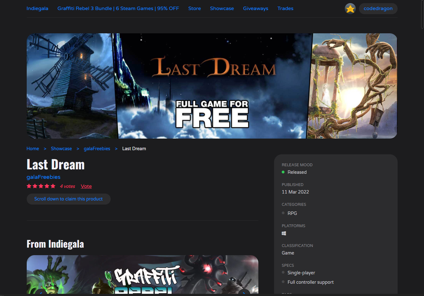 ₩10,500 -> ₩ 0(Free) Last Dream 라스트 드림 무료 - 인디갈라 indiegala 무료 소장 기회 기간한정 indiegala FREE GAME, Limited time (재배포)