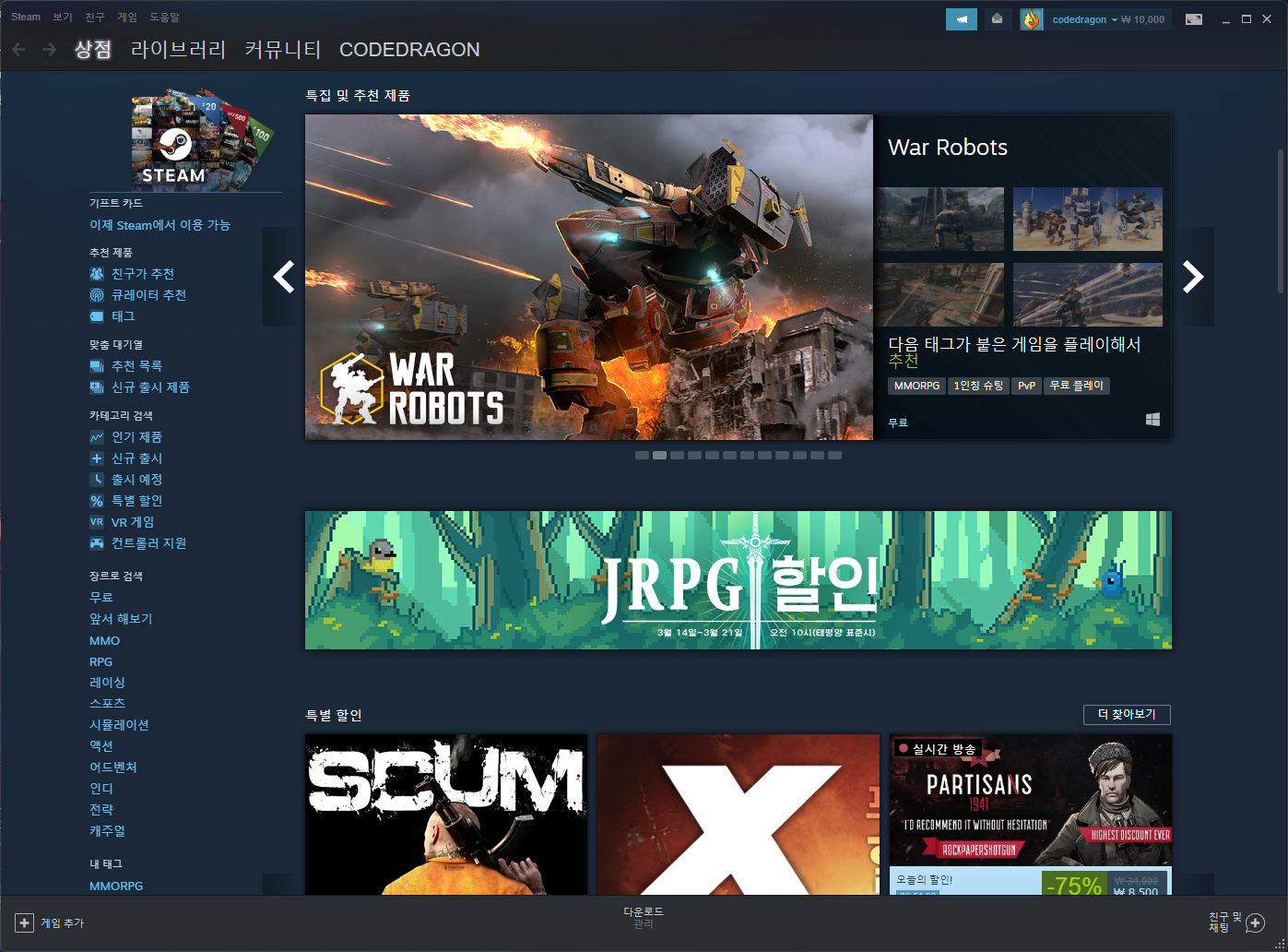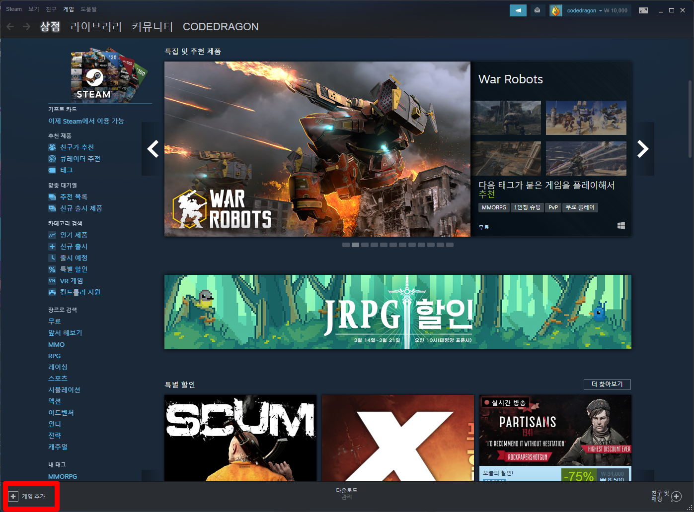 스팀 런처에서 상단에 있는 [라이브러리] 메뉴를 클릭합니다.
