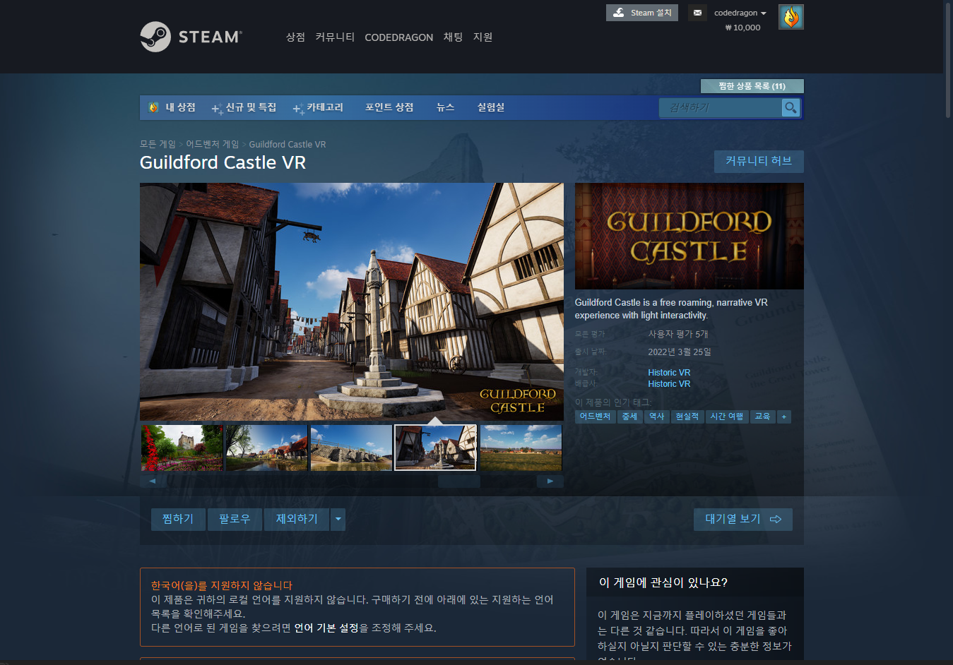 "Guildford Castle VR" 스팀 페이지 입니다.