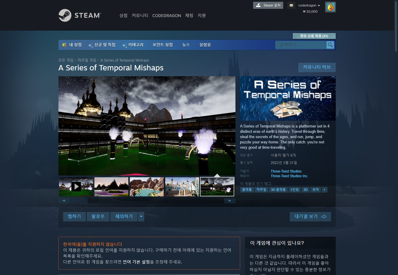 "A Series of Temporal Mishaps" 스팀 페이지 입니다.