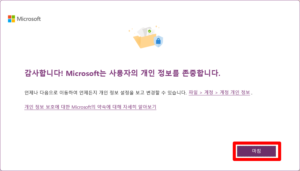 오피스 실행 후 개인 정보 보호, 선택사항 설정하기 - MS Office