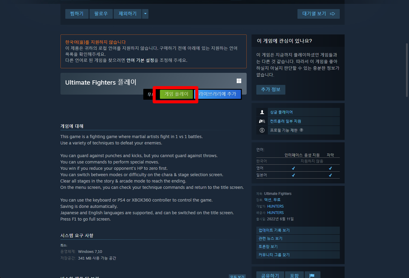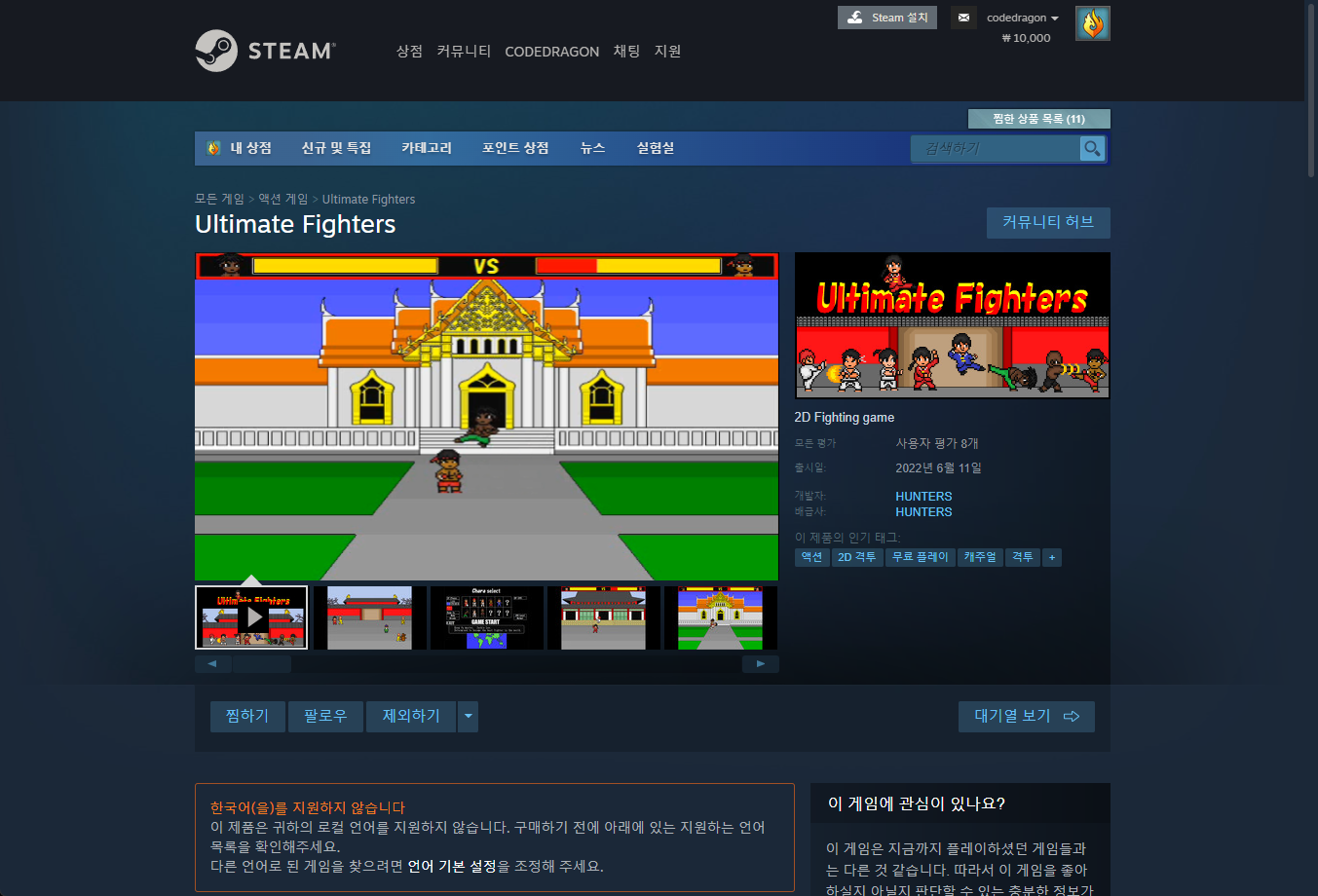 "Ultimate Fighters" 스팀 페이지 입니다.