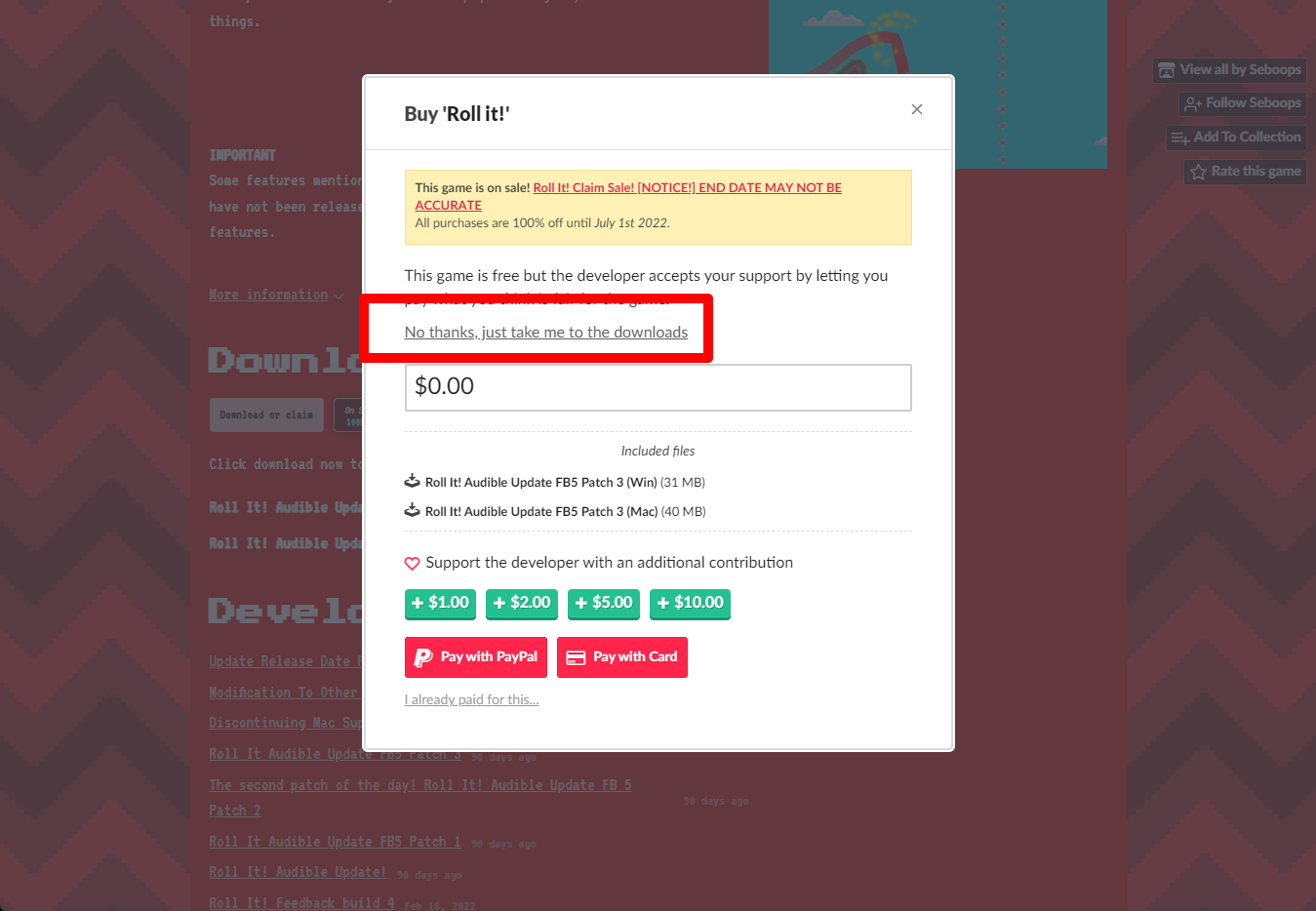 "Roll it!" 페이지에 있는 [Download or claim]을 클릭합니다.