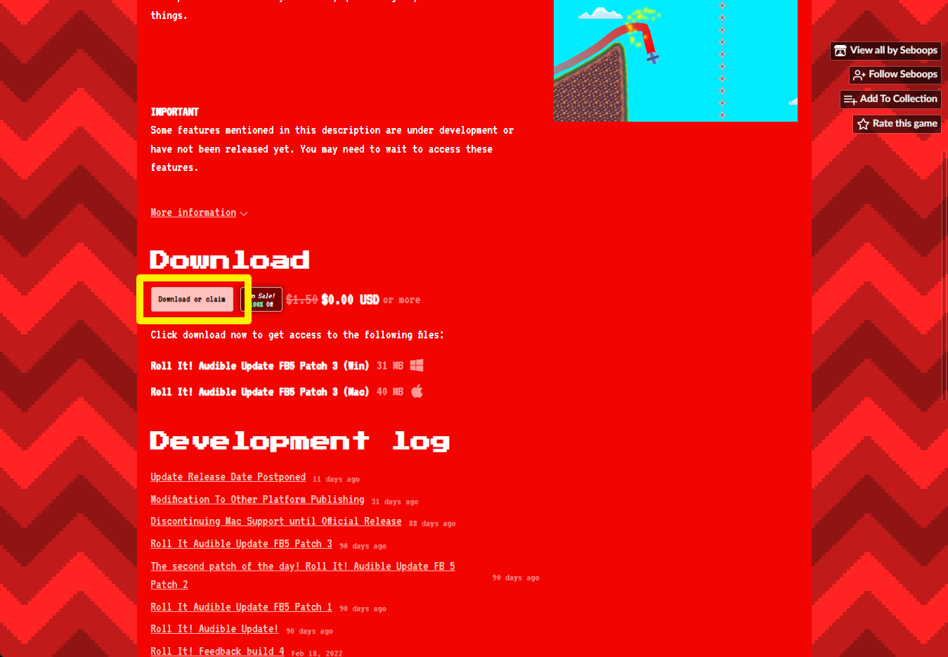 "Roll it!" 페이지에 있는 [Download or claim]을 클릭합니다.