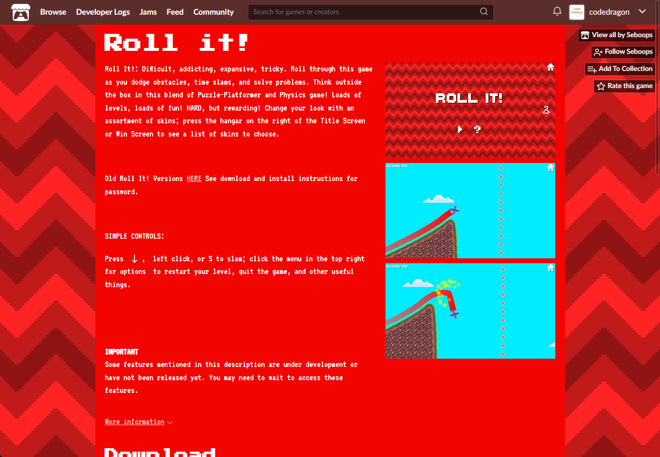 "Roll it!" 해당 항목에 있는 [Download] 버튼을 클릭하면 게임의 설치파일을 다운받을 수 있습니다.