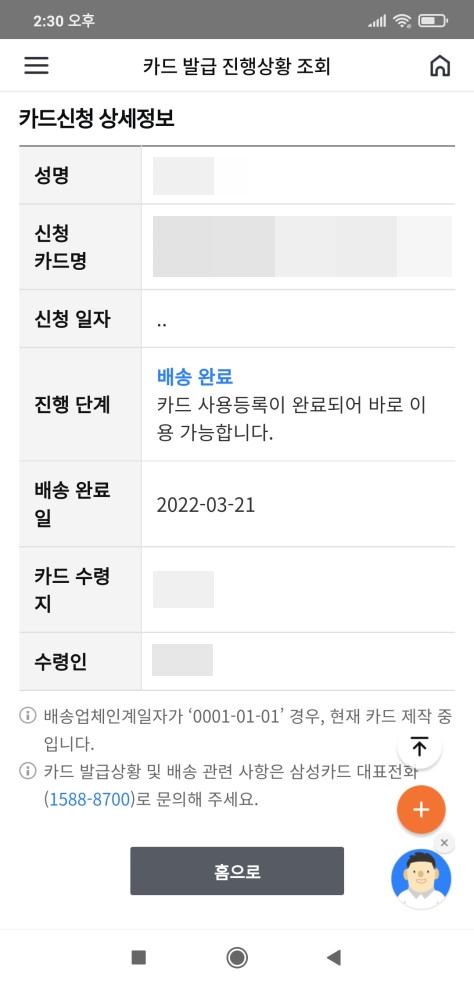 | 삼성카드 배송 상태 확인하기 (웹사이트) - Samsung Card (8) | 2022.04.03 |