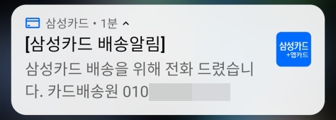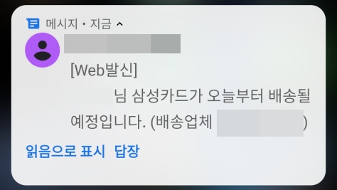 - 삼성카드 배송 알림 메시지