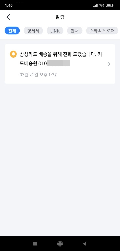 삼성카드 알림 확인하기