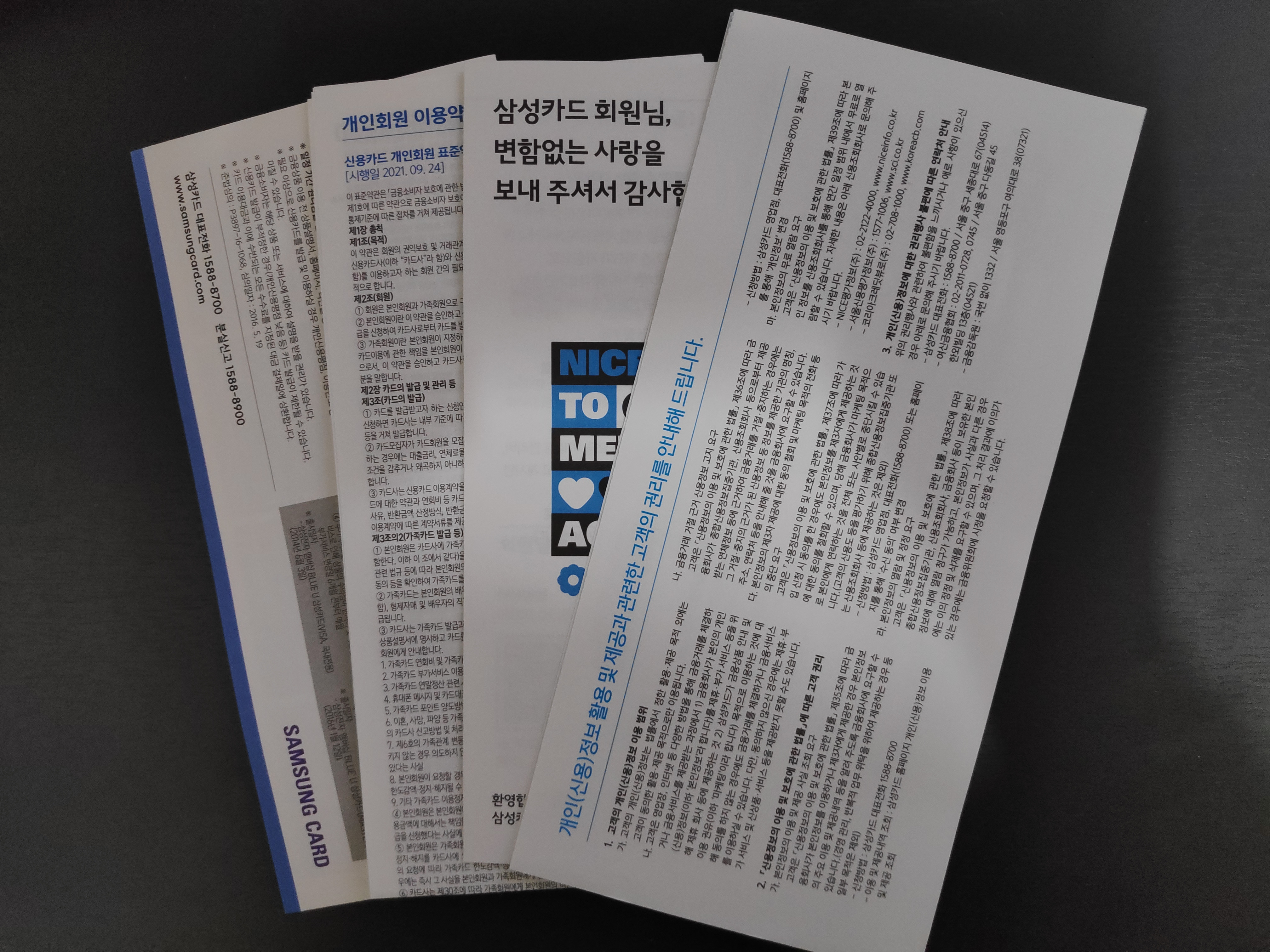 이것들은 삼성카드 앱으로 확인할 수 있도록 한장의 종이로 그림과 함께 안내하면 종이도 줄일 수 있지 않을 텐데 아쉽네요.