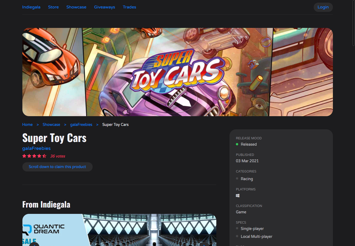 ₩10,500 -> ₩ 0(Free) Super Toy Cars 슈퍼 토이 카즈 무료 - 인디갈라 indiegala 무료 소장 기회 기간한정 indiegala FREE GAME, Limited time